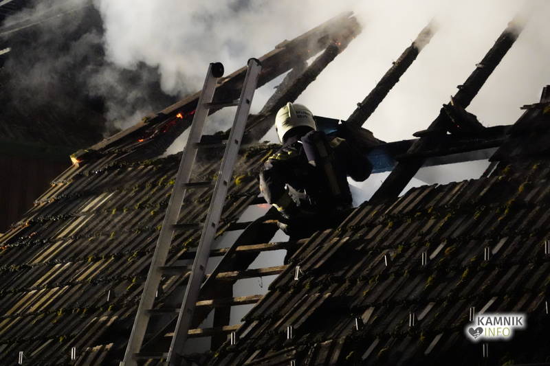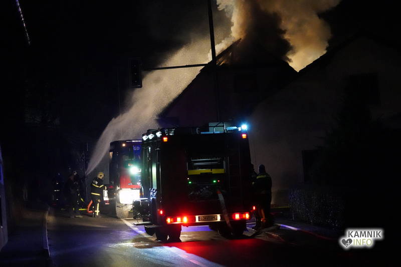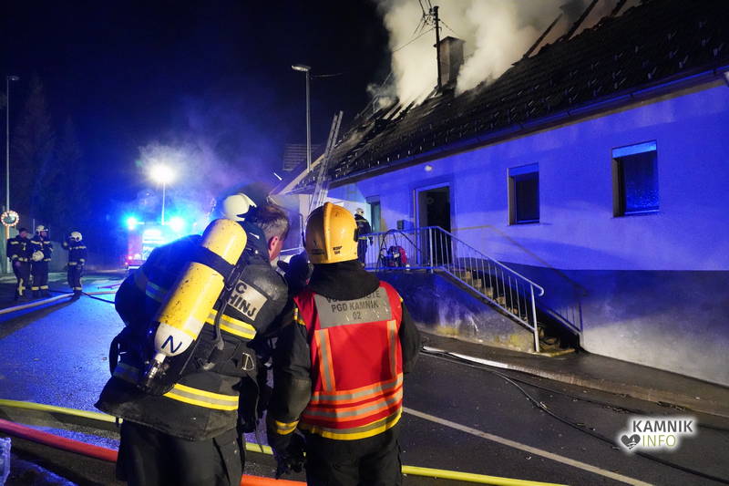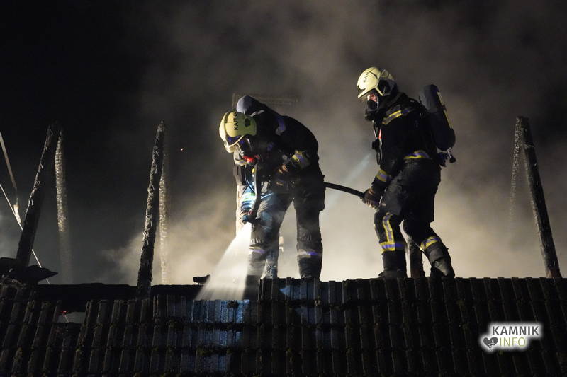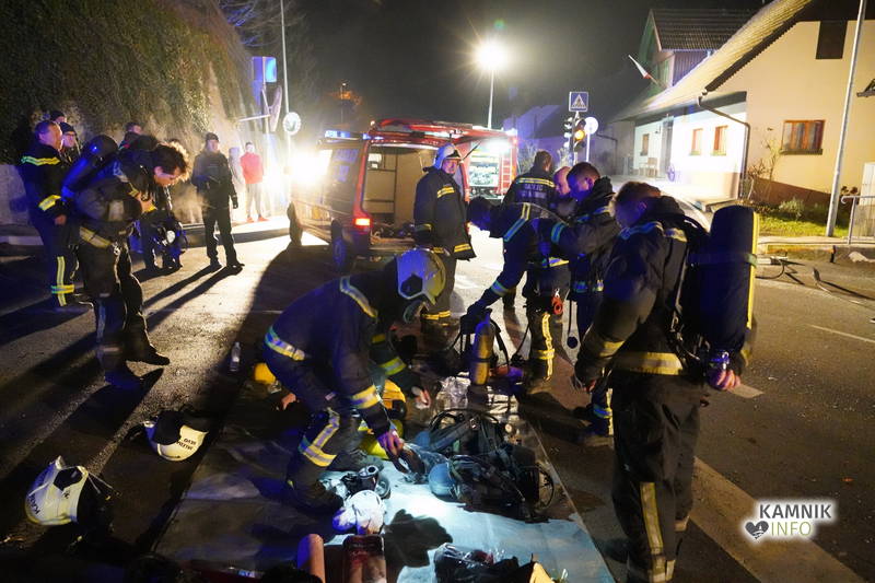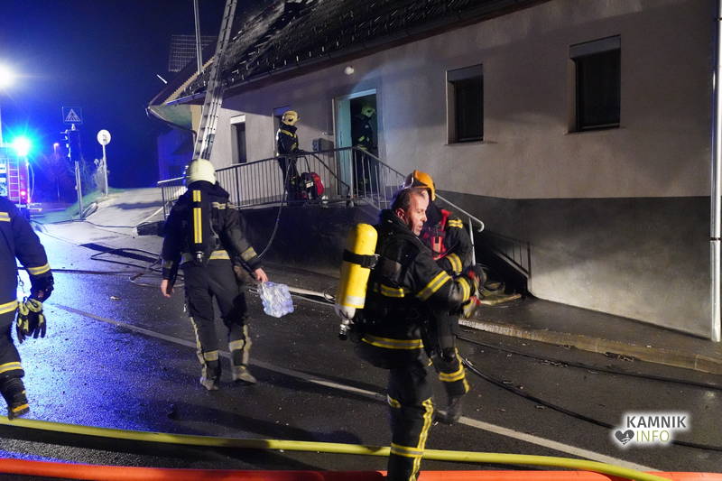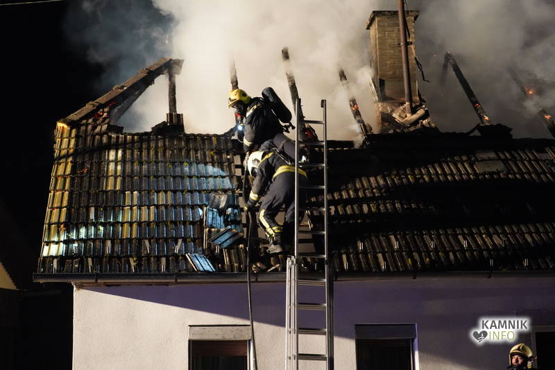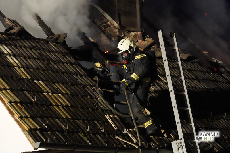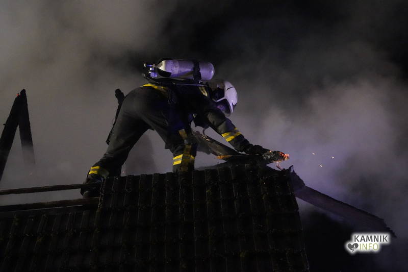 Posredovali so gasilci PGD Zgornji Tuhinj in PGD Kamnik, ki so, kljub zelo hitremu prihodu na prizorišče, naleteli že na povsem razvit požar, saj so ognjeni zublji zajeli ostrešje in celotno zgornje nadstropje starejše stanovanjske hiše, k sreči pa so se vsi prebivalci hiše uspeli pred ognjem še pravočasno umakniti na varno.
