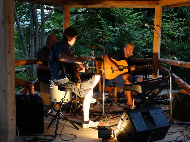 Jan Tomšič je s kitaristom in bobnarjem pričaral prijetno vzdušje ob katerem je nekaj obiskovalcev zaplesalo. Koncert se je klub slabšemu vremenu končal s plesom ob ognju.