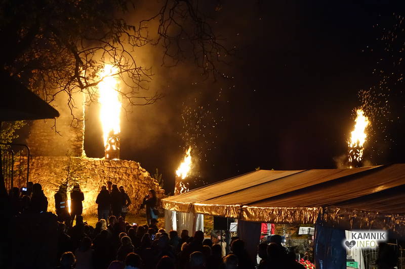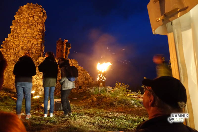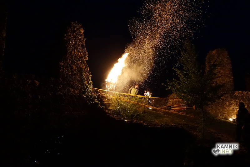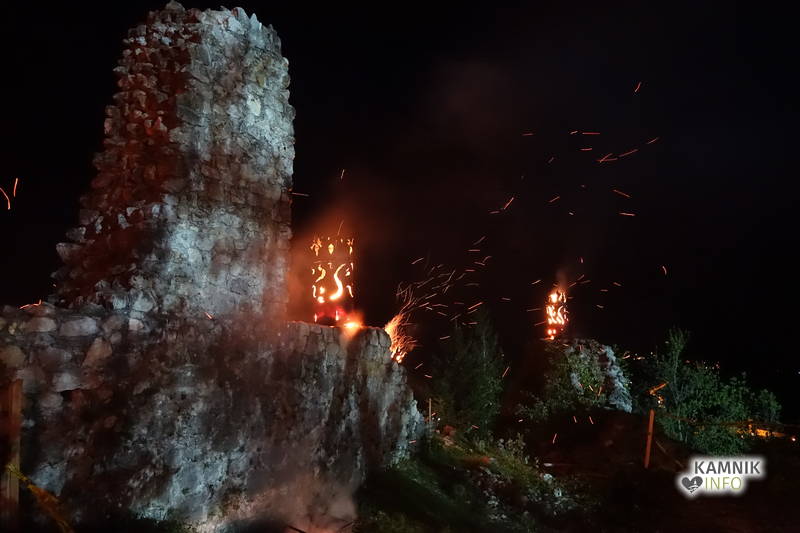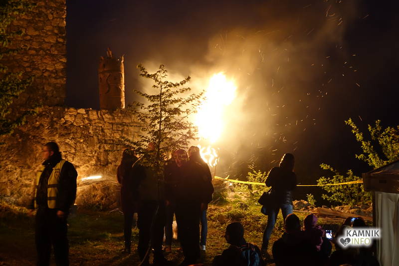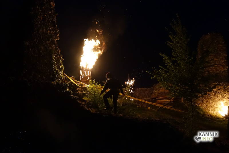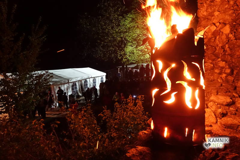 Na predvečer današnjega praznika dela se je na Starem gradu sinoči odvil glasbeno-pravljični večer, ki ga je, namesto običajnega kresa, popestrila simbolična ognjena inštalacija, ki je spomnila na nekdaj mogočno, zdaj pa po večini propadlo in izginulo kamniško industrijo.
