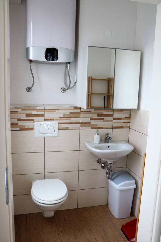 Prenovljeno stanovanje vsebuje kuhinjsko-bivalni prostor, kopalnico, stranišče in tri ločene spalnice, v katerih se nahajajo omare, delovni kotiček in postelja. Ob prevzemu stanovanja je bila infrastruktura v izredno slabem stanju; elektro instalacije so bile po dostopnih podatkih urejene leta 1962, v slabem stanju je bilo tudi ogrevanje, vodovod in kanalizacija pa sta bila delno prenovljena okoli leta 2000.