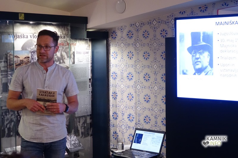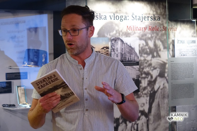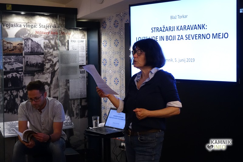 Na zadnjem Maistrovem večeru pred poletnimi počitnicami se je v Medobčinskem muzeju Kamnik zbrala manjša množica obiskovalcev na predstavitvi monografije Stražarji Karavank.