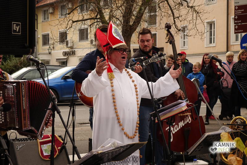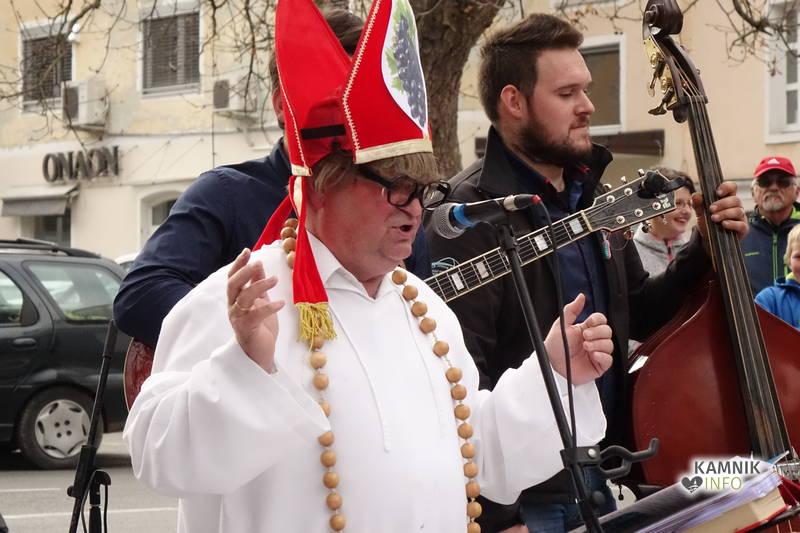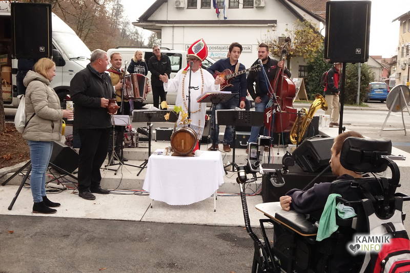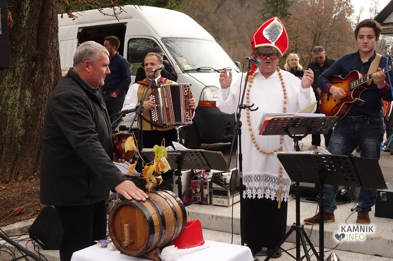 Za zabavo ob prigrizku ter kozarčku ali dveh, ki jih je bilo danes v izobilju tudi na ne tako odmaknjenih stojnicah županskih in strankarskih kandidatov, je duhovito poskrbel Konrad Pižorn – Kondi, ki je krst mošta v vino uspel obarvati vsaj nekoliko po kamniško. Četudi je bil danes v vlogi Bakhusovega odposlanca, pa je njegova čudodelna žal premajhna, da bi ob sotočju bližnje Nevljice in Kamniške Bistrice Martinov čudež zajel tudi kamniško vodo, s katero se bo dalo še naprej zgolj odžejati in umiti, ne pa, razen v morebitni bevandi, tudi opiti.