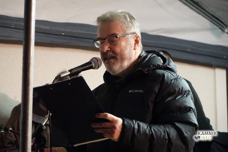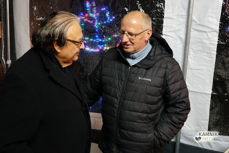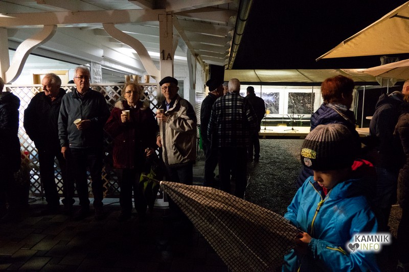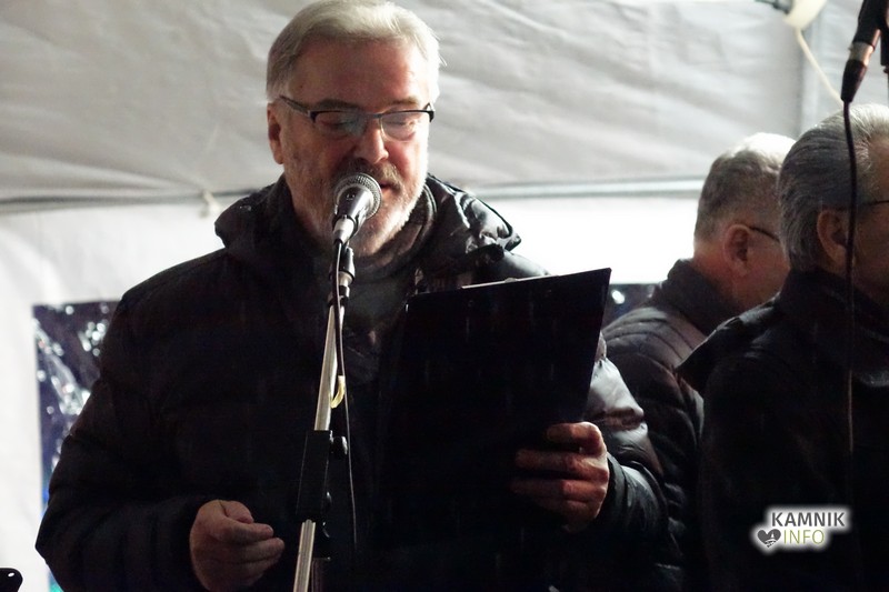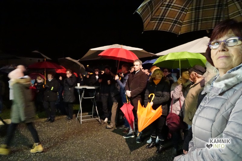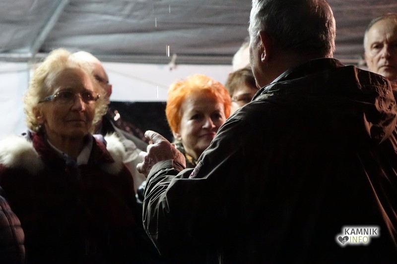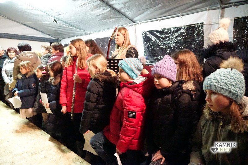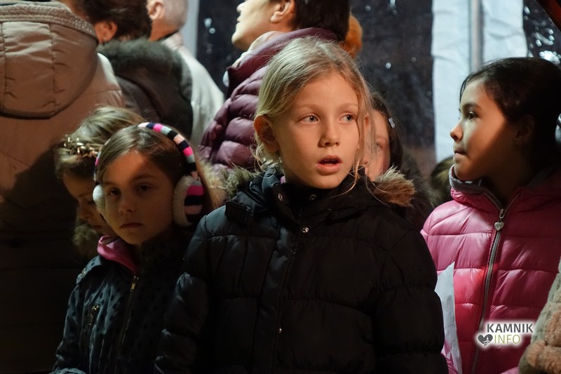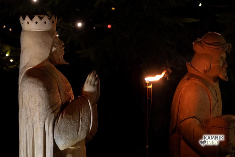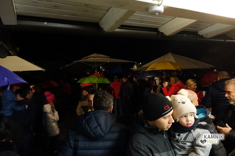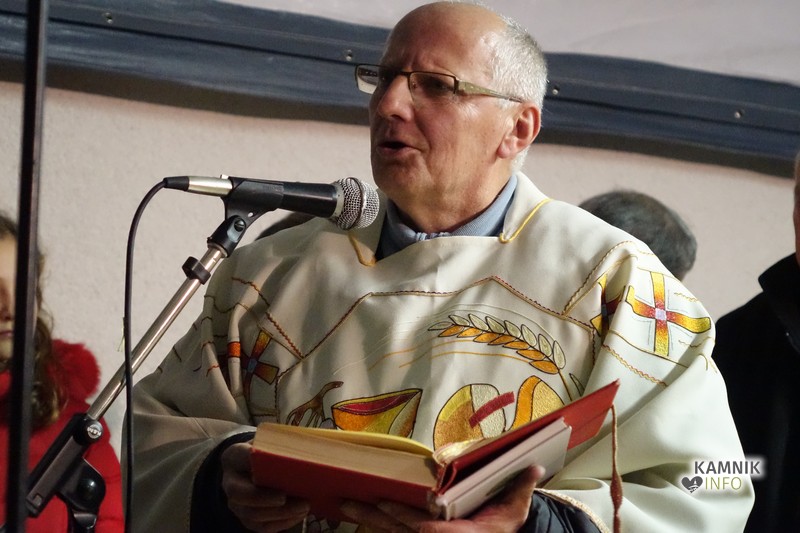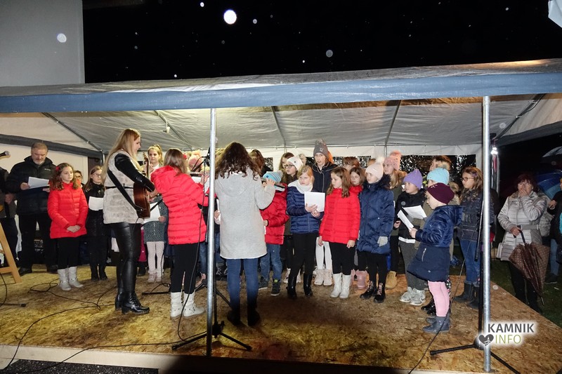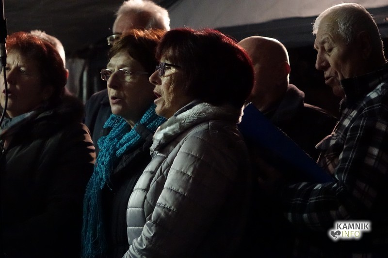Zbrane so s pesmijo pozdravili člani mešanega pevskega zbora DU Komenda, za njimi pa je na oder stopil župnik, ki je po kratki maši blagoslovil jaslice in tudi vse zbrane, kjub temu da je bila blagoslovljena voda le kaplja v morje proti deževju, ki je mokril gledalce.