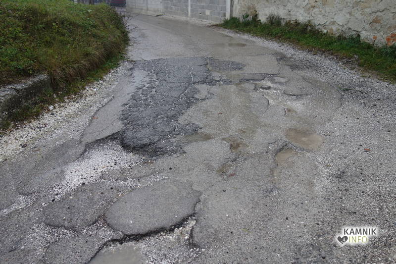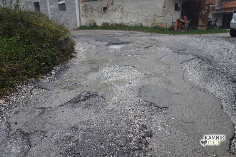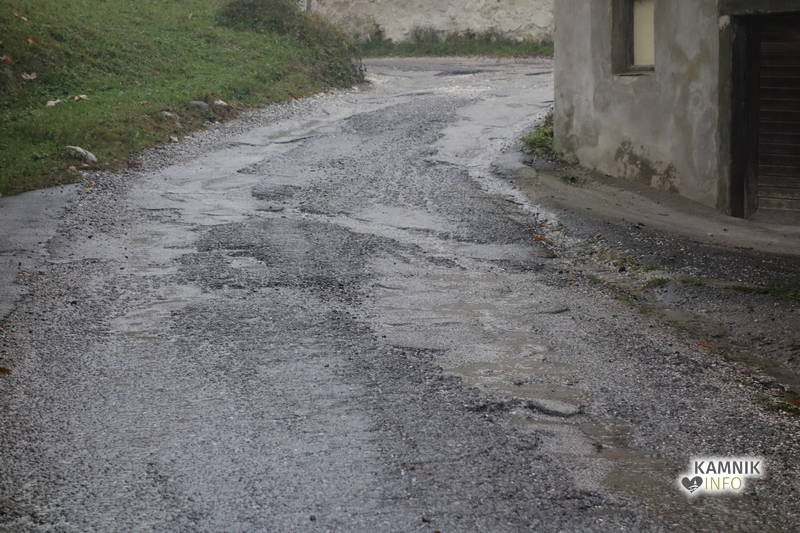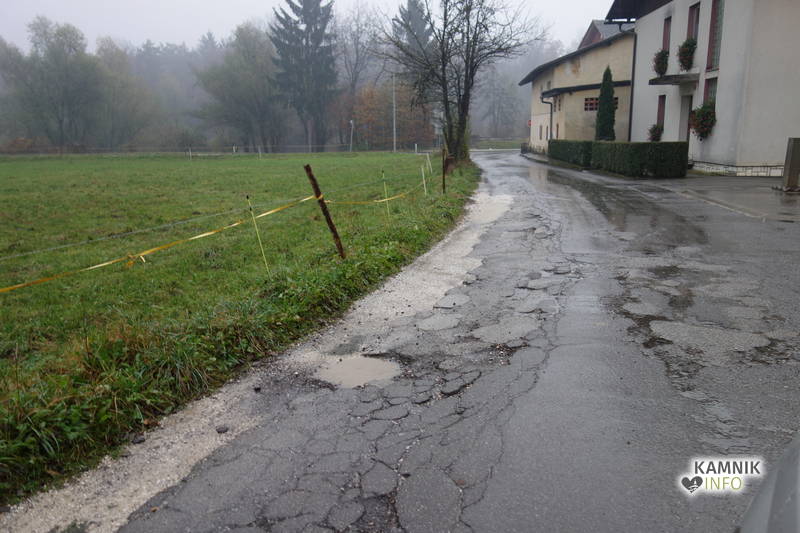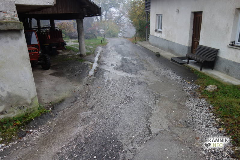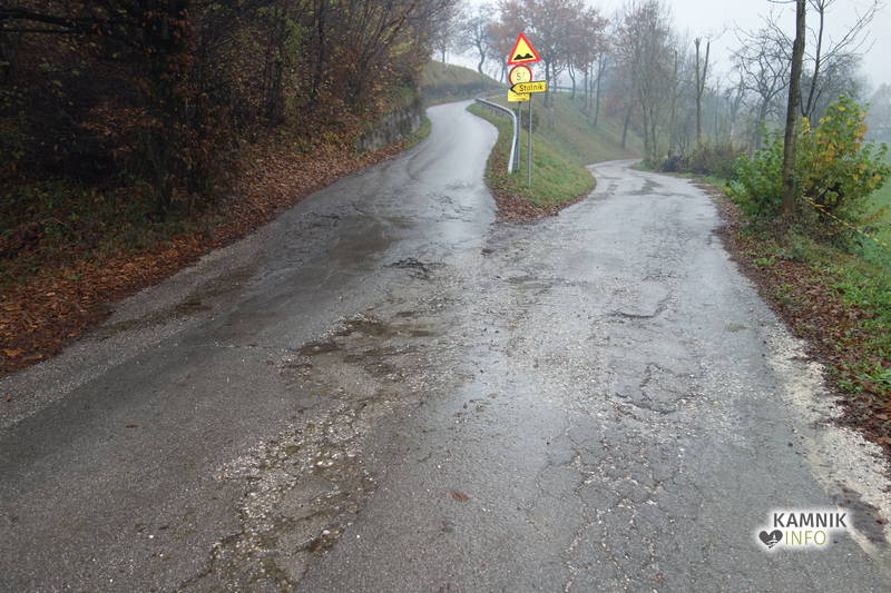 Cesta, ki je že vse od Spodnjih Stranj široka zgolj toliko, da se na njej brez težav peš srečata zgolj ne preveč dobro hranjeni sosedi, namreč vse do konca vasi ponuja številna nepričakovana presenečenja, ki bi se jih utegnil razveseliti vsak ozaveščen komunalni delavec, ki ne prenese pogleda na luknjo v cesti, če bi ga le kdaj poslali na teren izven Kamnika.