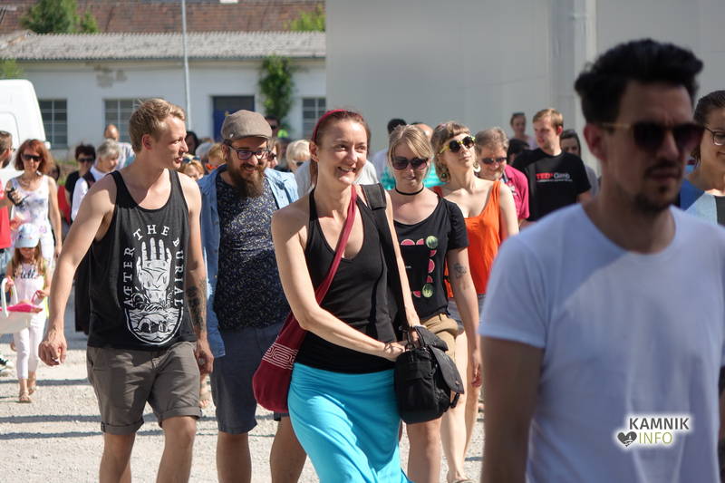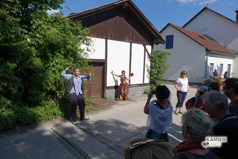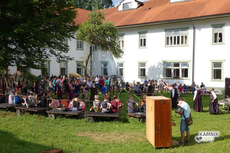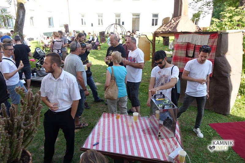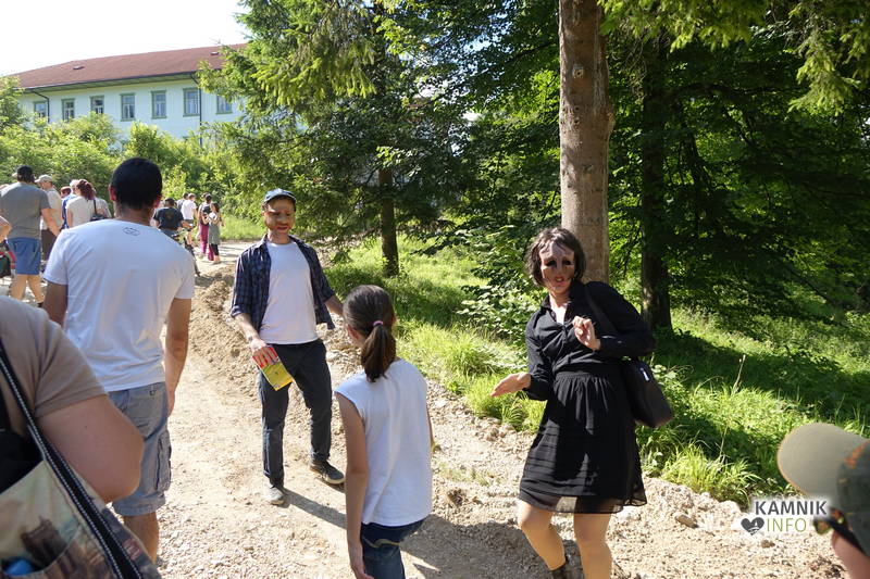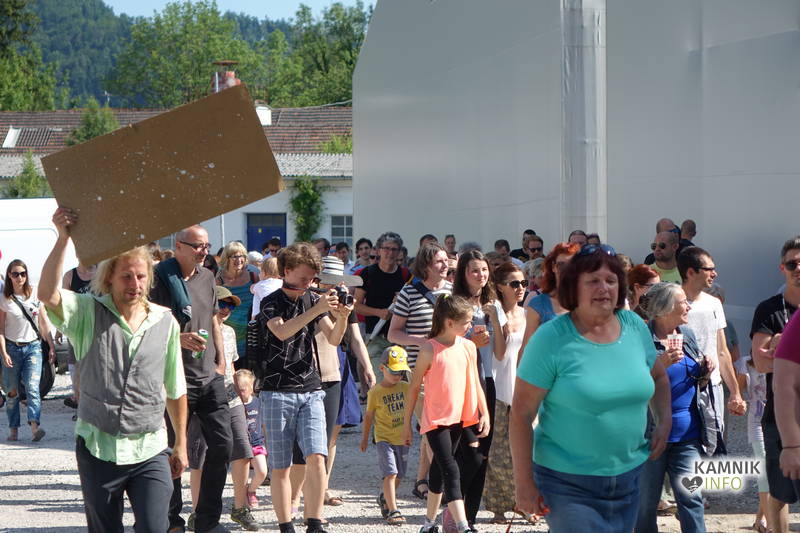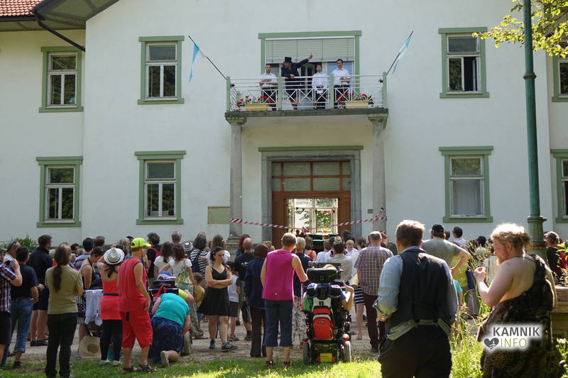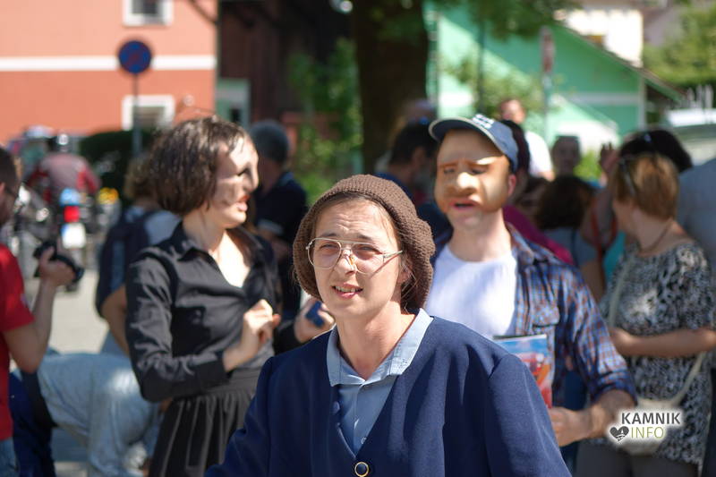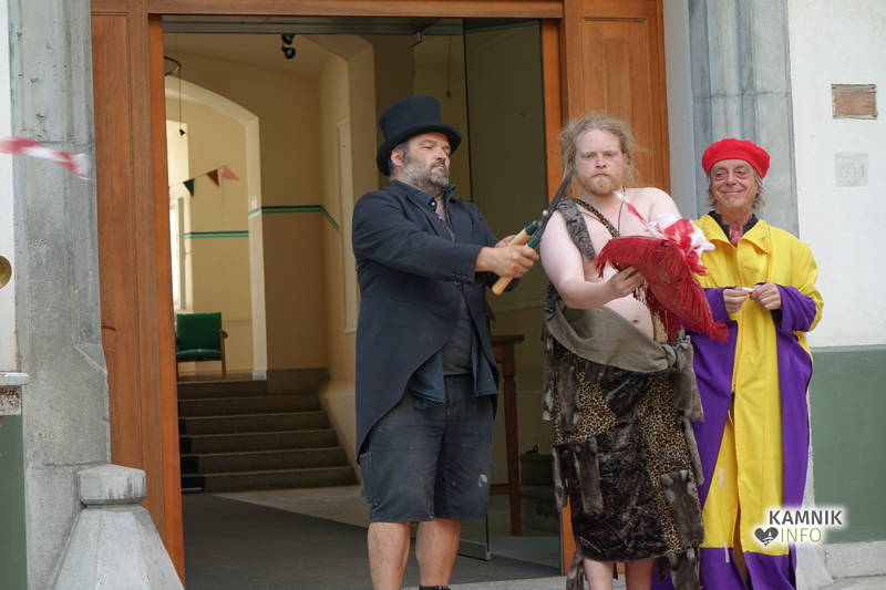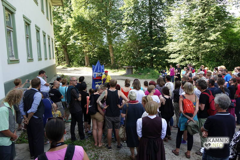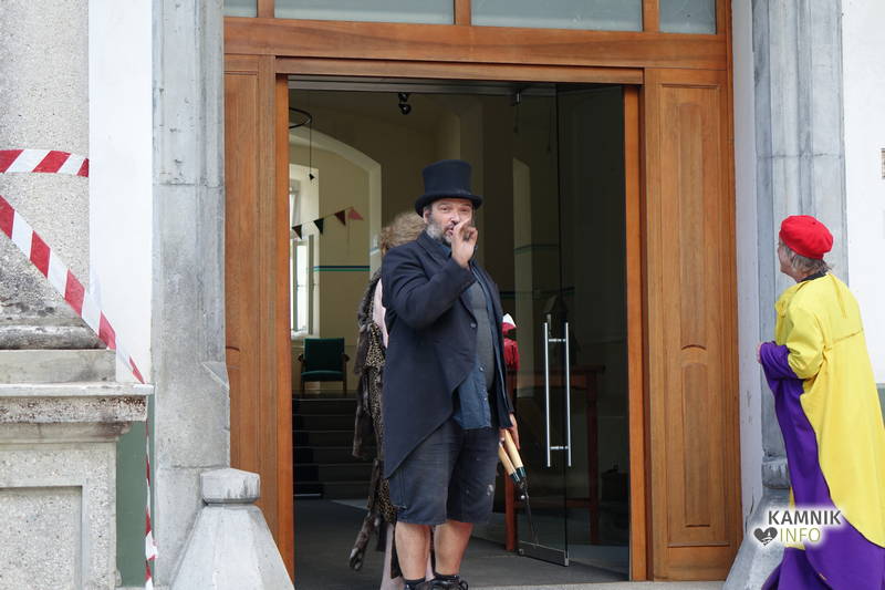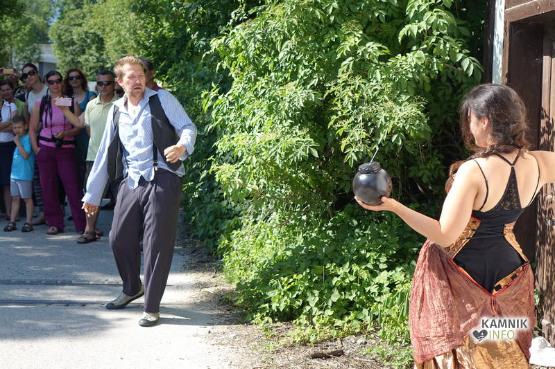Na včerajšnje vroče nedeljsko popoldne, nekaj pred četrto uro, se je, kot nekdaj delavci, pred nekdanjo smodnišnično vratarnico, ki podobno kot prenekateri artefakt bogate kamniške industrijske dediščine, živi zgolj še v bledečih spominih in fotografijah, zbrala prav lepa množica novih kulturnih dogodivščin željnih ter radovednih obiskovalcev, ki so se ob pomoči turistično-kulturnih vodičev, levo desno in malo naokoli, podali na zabavno pot »spominov in tovarištva« do dvorca Kaztenberg, med potjo pa, ob pomoči uličnih gledališčnikov, srečevali šaljivo groteskne prikaze zgodovinskih utrinkov in preroške napovedi skorajšnje kamniške prihodnosti, ki so krajšali soparno pot do prijetnega senčnega zavetja kulturnega vrta.