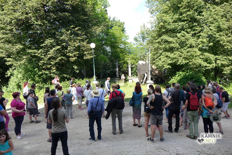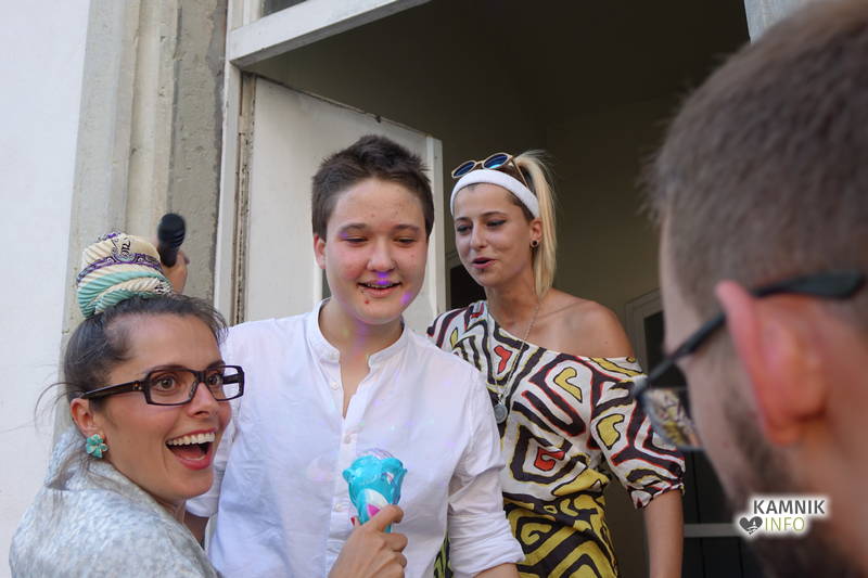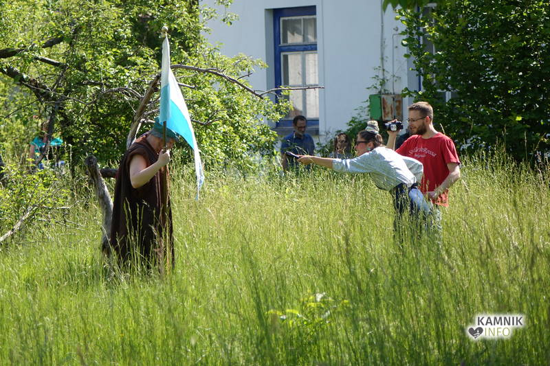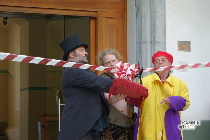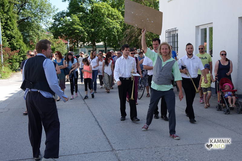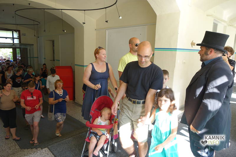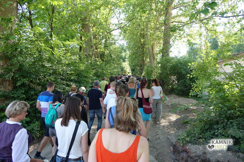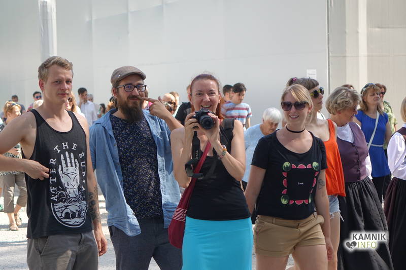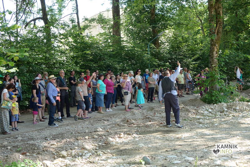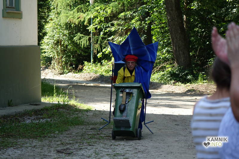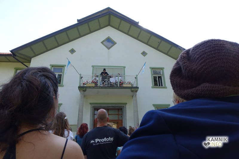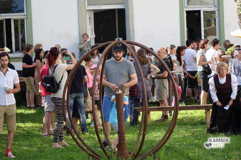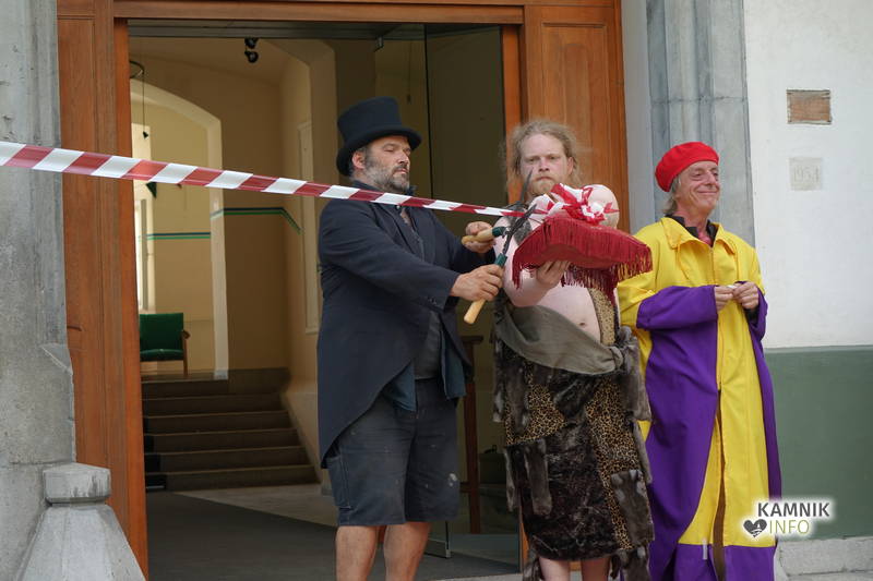 Na včerajšnje vroče nedeljsko popoldne, nekaj pred četrto uro, se je, kot nekdaj delavci, pred nekdanjo smodnišnično vratarnico, ki podobno kot prenekateri artefakt bogate kamniške industrijske dediščine, živi zgolj še v bledečih spominih in fotografijah, zbrala prav lepa množica novih kulturnih dogodivščin željnih ter radovednih obiskovalcev, ki so se ob pomoči turistično-kulturnih vodičev, levo desno in malo naokoli, podali na zabavno pot »spominov in tovarištva« do dvorca Kaztenberg, med potjo pa, ob pomoči uličnih gledališčnikov, srečevali šaljivo groteskne prikaze zgodovinskih utrinkov in preroške napovedi skorajšnje kamniške prihodnosti, ki so krajšali soparno pot do prijetnega senčnega zavetja kulturnega vrta.
