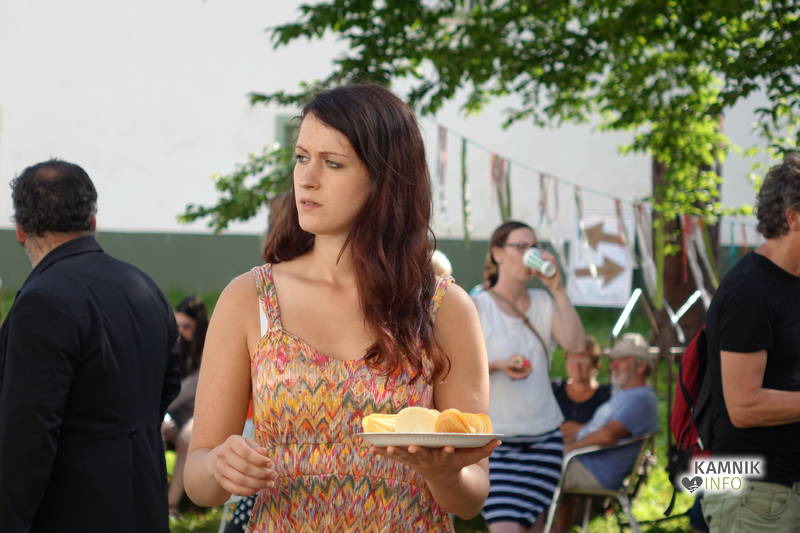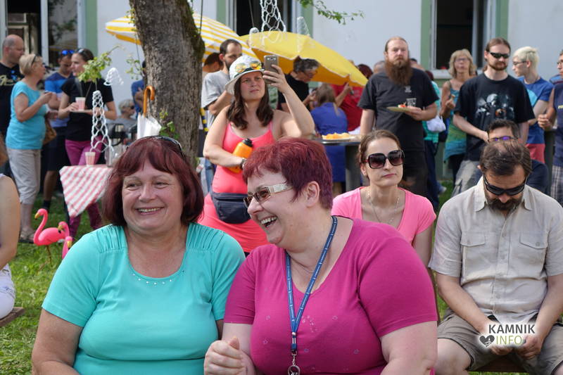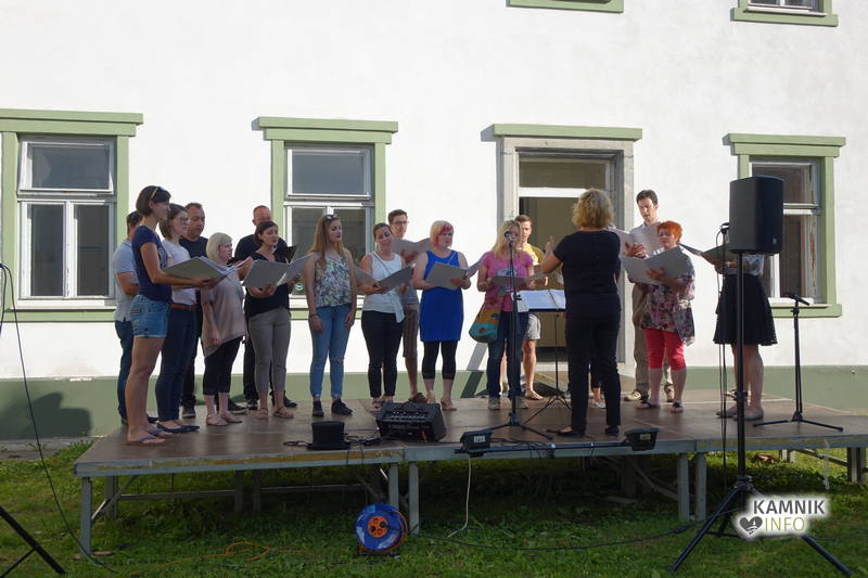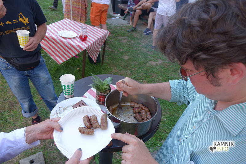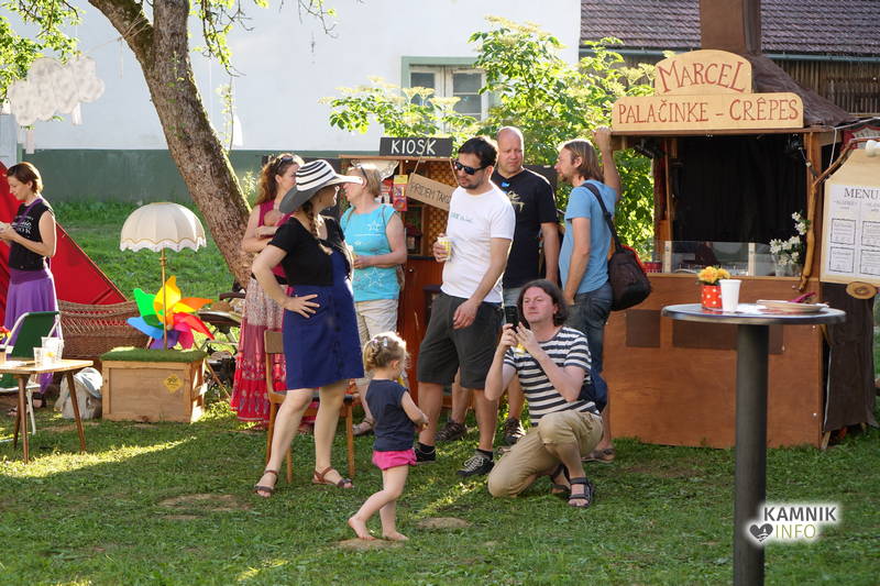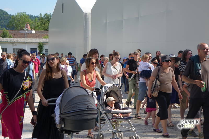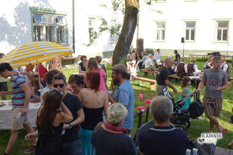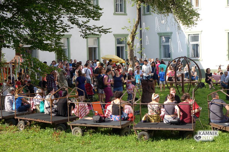 Od vremena, poti, dogodivščin in radovednega pričakovanja dodobra razgreta množica obiskovalcev, ki se ob pri vstopu zgledno zvrstila pri brezplačne vstopnice deleči biljeterki, je slednjič le lahko vstopila v posvečeno hladne grajske hodnike ter se urno sprehodila do grajskega atrija, kjer je, od naporne poti utrujeno občinstvo, že čakala več kot dobrodošlo okrepčilo, ki ga nastopajoči v spremljevalnem kulturnem programu vendarle niso preveč motili, ampak kvečjemu pripomogli k ubrano ritmičnemu žvečenju in srkanju ter kramljanju, tako da je celo dogajanje, kot je bilo tudi namenjeno, spominjalo na en velik, lušten, predvsem pa nadvse sproščen piknik kamniške velike kulturne družine.