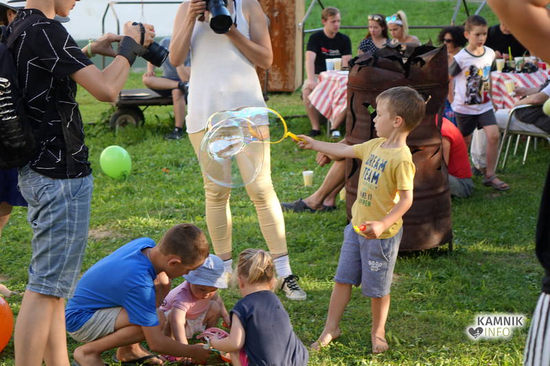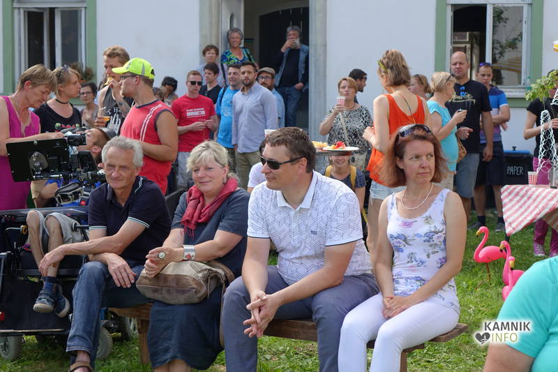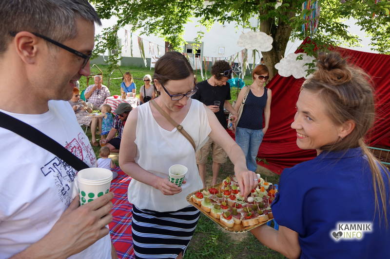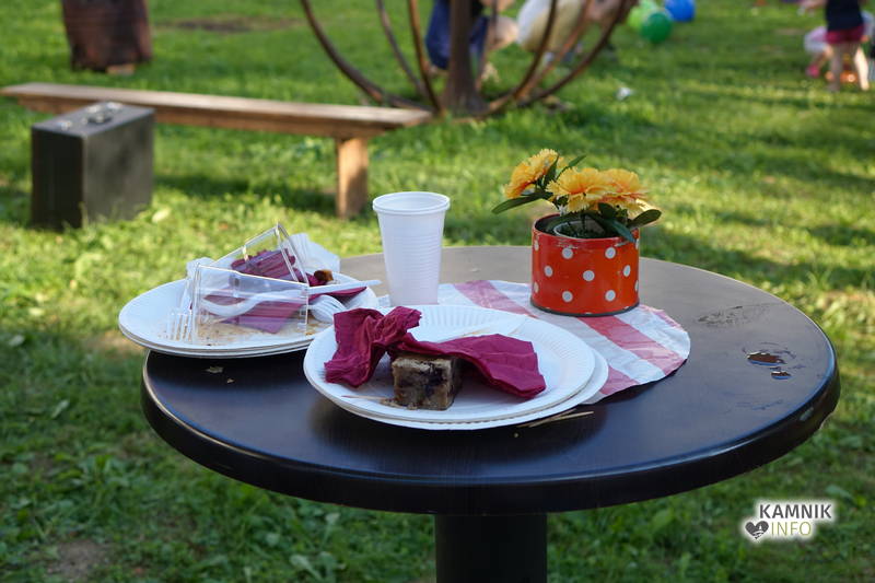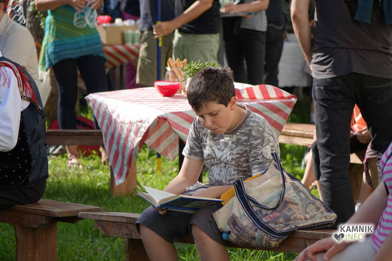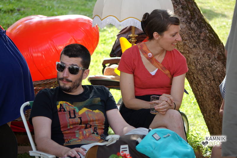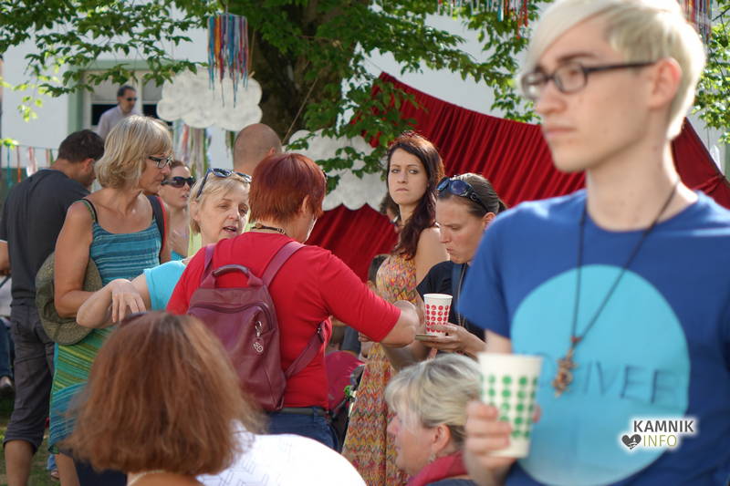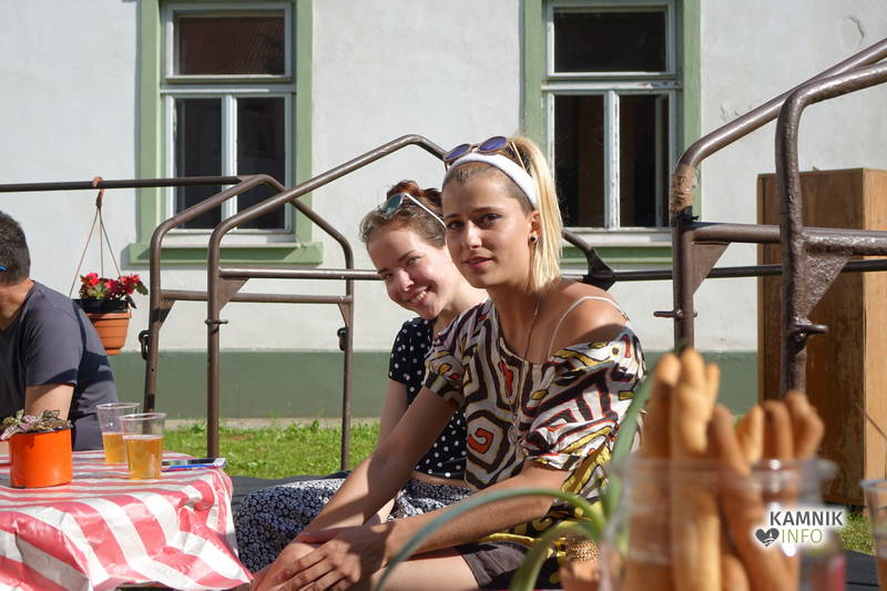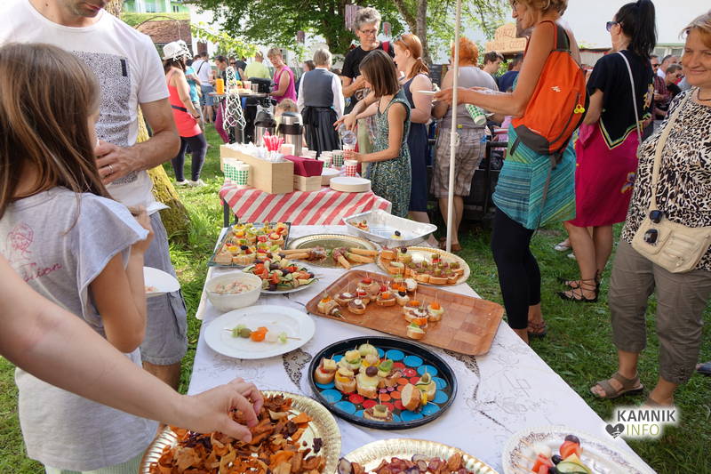 Od vremena, poti, dogodivščin in radovednega pričakovanja dodobra razgreta množica obiskovalcev, ki se ob pri vstopu zgledno zvrstila pri brezplačne vstopnice deleči biljeterki, je slednjič le lahko vstopila v posvečeno hladne grajske hodnike ter se urno sprehodila do grajskega atrija, kjer je, od naporne poti utrujeno občinstvo, že čakala več kot dobrodošlo okrepčilo, ki ga nastopajoči v spremljevalnem kulturnem programu vendarle niso preveč motili, ampak kvečjemu pripomogli k ubrano ritmičnemu žvečenju in srkanju ter kramljanju, tako da je celo dogajanje, kot je bilo tudi namenjeno, spominjalo na en velik, lušten, predvsem pa nadvse sproščen piknik kamniške velike kulturne družine.