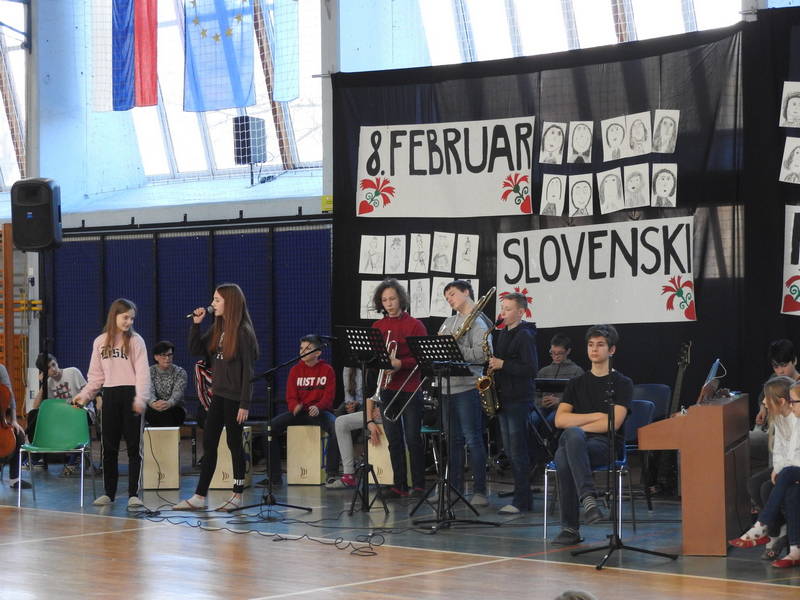 Rdeča nit letošnje prireditve sta bila življenjska zgodba in delo našega največjega slovenskega pesnika dr. Franceta Prešerna, saj smo med plesnimi, pevskimi in recitacijskimi točkami lahko prisluhnili zgodbi pisateljice Mojiceje Podgoršek z naslovom O dečku, ki je pisal pesmi. Skozi zgodbo smo počasi odstirali kamenčke Prešernovega življenja in umetniškega ustvarjanja, učenci in učenke pa so v vsebinsko podobo prireditve postopoma dodajali recitacije Prešernovih pesmi, balet, petje, ples in inštrumentalno glasbo. Prireditev se je zaključila z zadnjo kitico Prešernove Zdravljice, ki s pozitivnim sporočilom Slovencem daje upanje na boljše čase. Vsem še enkrat iskrene čestitke ob slovenskem kulturnem prazniku.
