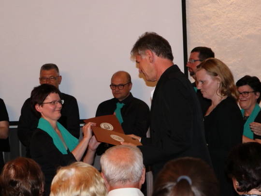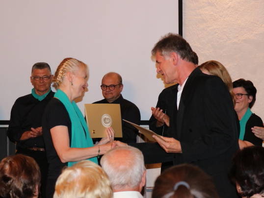 Ob koncu koncertnega programa je Tone Ftičar, predstavnik Javnega sklada za kulturne dejavnosti v občini Kamnik, v imenu sklada komornemu pevskemu zboru Šutna podelil priznanje ob 20-letnici delovanja. Zlata in bronasta Gallusova priznanja pa so prejeli še pevci in pevke za dolga leta udejstvovanja v zboru. Zboru Šutna so ob tej priložnosti čestitali tudi predstavniki KD Miran Jarc, moškega pevskega zbora Lira in mešanega pevskega zbora Cantemus.