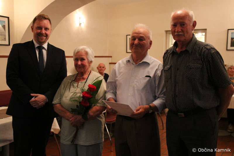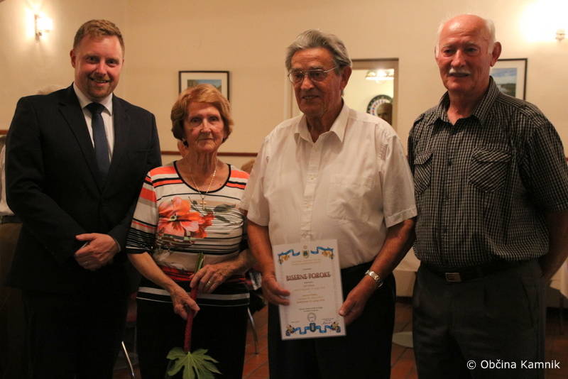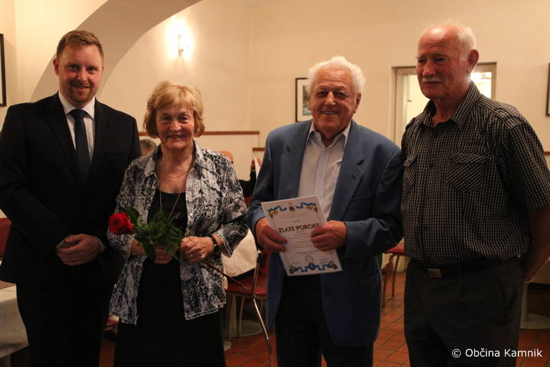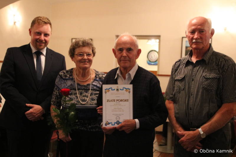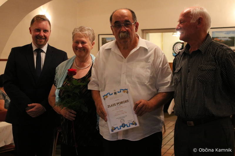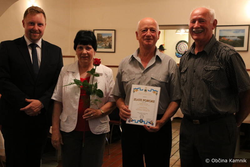 Podžupan Igor Žavbi je jubilantom iskreno čestital v imenu Občine Kamnik z naslednjimi željami: »Če je ljubezen tista prava, kar je pri vas očitno bila, potem premaga vse težave. V življenju ni nikdar vse lepo in gladko. S pogovorom in medsebojnim razumevanjem se da premagati marsikatero težavo. Vi ste dokaz za to. Danes ste tukaj in skupaj se veselimo vašega jubileja. Frane Milčinski Ježek je v eni svojih pesmi zapisal: »Ljubezen naj gre vedno v cvet, da bo lepši, da bo zaljši ta okrogli nori svet.« Naj gre ljubezen še vedno v cvet, pa četudi na nekoliko starejša leta. Nikdar ni prepozno, da si zakonca zaupata, da se imata rada in ljubezen brezmejno negujeta. Če vam bo le zdravje dopuščalo, verjamem, da se bomo ob prihodnjem jubileju ponovno srečali. Iskrene čestitke vsem za vztrajanje, pogum in ohranjanje ljubezni.«