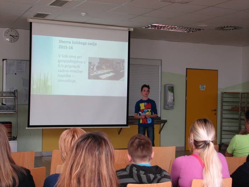 Izobraževalne aktivnosti za učence, delavce šole in starše: učenci so preučili, katere vrste sadja rastejo v naši okolici; vsa leta smo izdelovali plakate in seminarske naloge o zdravi prehrani s poudarkom na svežem sadju in zelenjavi; ob različnih priložnostih so bile organizirane praktične medgeneracijske delavnice na teme o zdravem življenju, zdravi prehrani in uživanju svežega sadja in zelenjave, učenci so raziskovali svoje prehranske navade in jih ocenili z vprašalnikom ter analizirali; delili smo zloženke (na javni predstavitvi prehranskih projektov), ki prikazujejo različne načine pridobivanja živil; učenci so se navadili upoštevati higienske dobre navade: pred zaužitjem so si najprej umili roke, potem pa še sadje in zelenjavo; izvedeni so bili naravoslovni in tehniški dnevi na temo zdrava prehrana; starši, učitelji in učenci ter lokalna dobaviteljica mleka so obiskali predavanje o zdravi prehrani in projektu Shema šolskega sadja in zelenjave ter o vseh prehranskih šolskih projektih, ki smo ga letos že drugo leto izvedli z učenci 6. razredov.