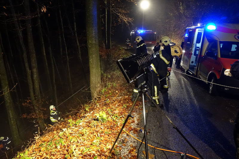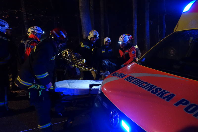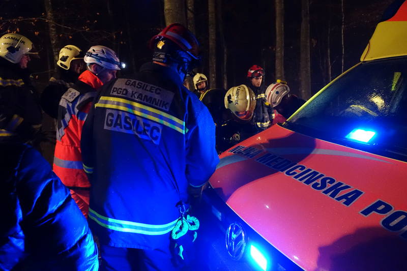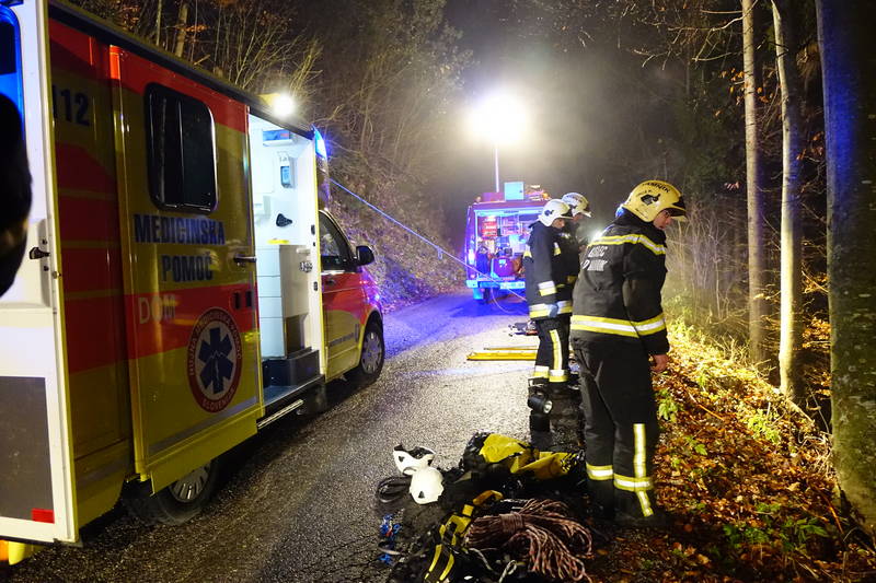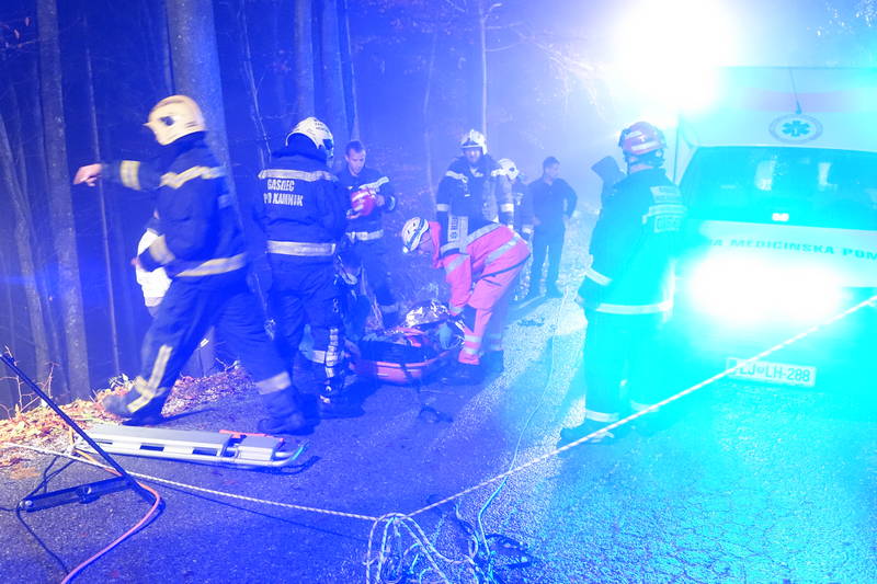 Na lokalni cesti Smrečje v Črni – Gozd je včeraj, nekaj po 22. uri ponoči, prišlo do prometne nesreče, v kateri je vozilo, po strmi gozdnati grapi, zgrmelo več kot 100 metrov pod cesto.