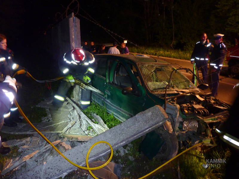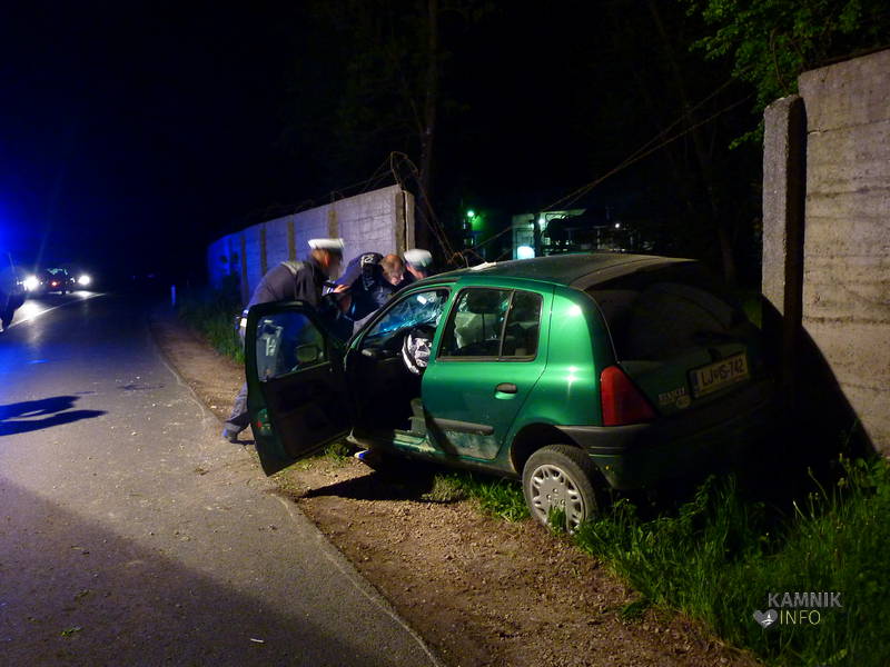 Kamnik, 7. maj 2015 – Nekaj po enajsti uri zvečer je na regionalni cesti Kamnik – Stahovica, ob smodnišničnem zidu, prišlo do hujše prometne nezgode, v kateri je bil poškodovan voznik osebnega vozila.