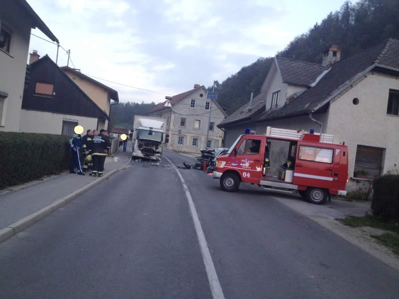 “Ob 16.46 nas je Regijski center za obveščanje Ljubljana obvestil o prometni nezgodi v naselju Vrhpolje pri Kamniku, kjer je prišlo do trčenja med osebnim vozilom in tovornjakom. Po trčenju je ena oseba ostala ukleščena v vozilu. Na mesto intervencije je odšlo 15 gasilcev s 4 vozili: PV-1, GVC 16/25, HTV in TRV-2D.