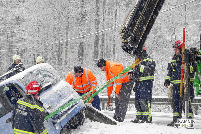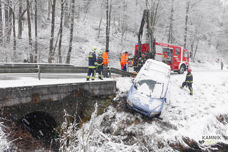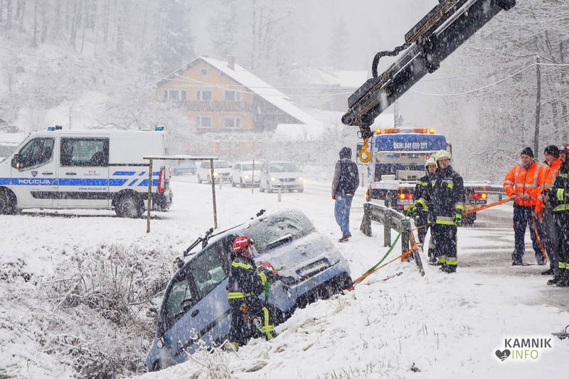 Zasneženo in spolzko cestišče je že terjalo svoj davek, saj je zjutraj, okrog 8.30, v Soteski pod kavranskim klancem, pri odcepu za Poreber, prišlo do prometne nesreče v kateri je voznik osebnega vozila zdrsnil v obcestni jarek. V nezgodi, k sreči, ni bil nihče poškodovan, so pa morali posredovati gasilci PGD Kamnik, ki so zaščitili kraj nezgode in odklopili akumulator, vozilo iz precej globokega obcestnega jarka pri mostičku, pa izvlekli z dvigalom.