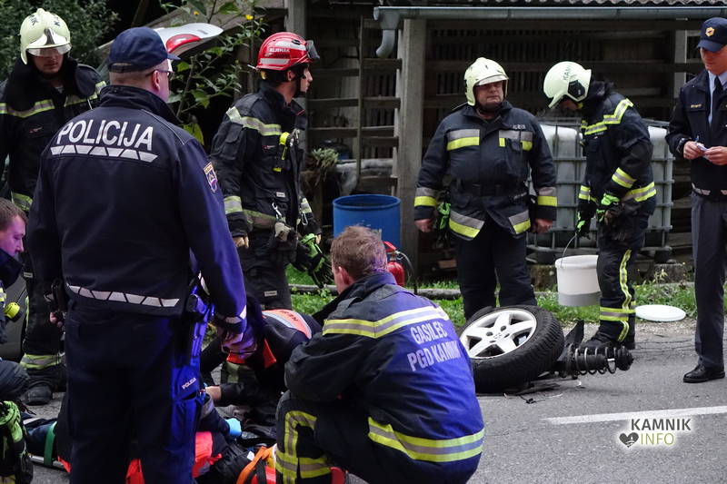 Na prizorišču so posredovali tudi gasilci PGD Kamnik, ki so poškodovanca rešili iz vozila, nudili pomoč reševalcem pri oskrbi in prenosu poškodovane osebe v reševalno vozilo, na obeh vozilih odklopili akumulatorja ter z vpojnim sredstvom posuli razlite motorne tekočine.
