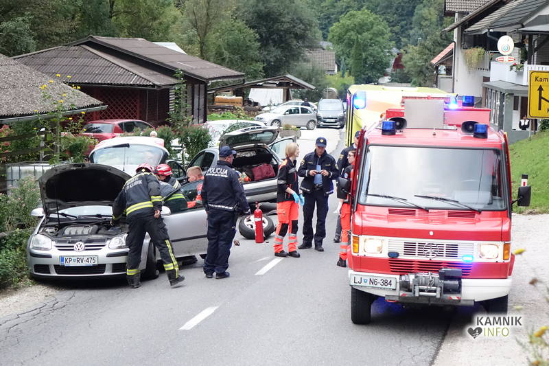 V trčenju dveh osebnih vozil sta bili po prvih podatkih poškodovani dve osebi, ki ju je oskrbela in na nadaljnje zdravljenje odpeljala reševalna ekipa Nujne medicinske pomoči Zdravstvenega doma Kamnik.