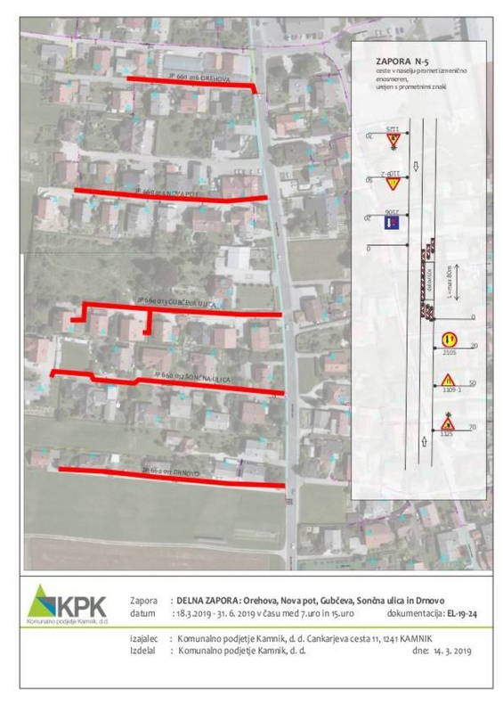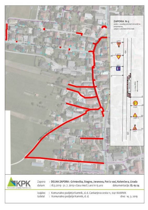 Dela bo izvajalo Komunalno podjetje Kamnik, d. d. v času od 18. 3. 2019 do 31. 7. 2019 v delovnem času med 7:00 – 15:00.