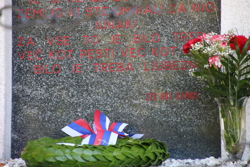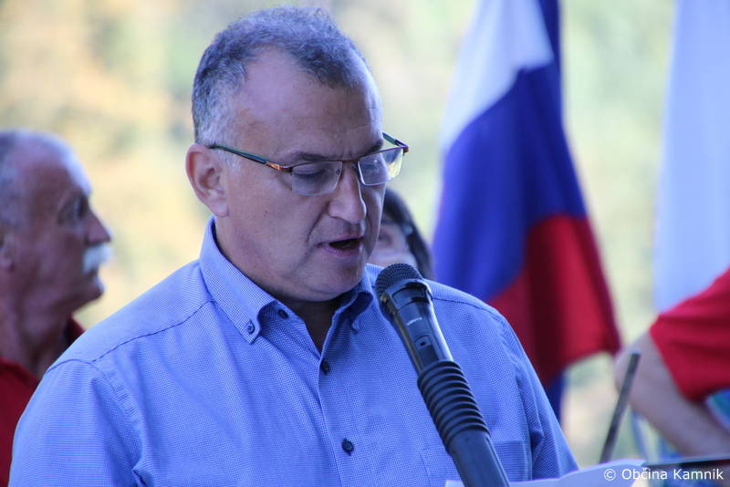 »Okupator je takoj po prihodu uvedel svojo oblast, prepovedal uporabo slovenskega jezika po uradih, šolah in cerkvah. Slovenske učitelje in duhovnike je pregnal, nastavljal nemške učitelje in uvedel po šolah nemški učni jezik. Prav tako je postala nemščina uradni jezik po uradih in ustanovah. Slovenske knjižnice in kulturno-prosvetna društva je prepovedal. Okupator je hotel uničiti slovenski narod, našo kulturo in jezik. Ali ni bil upor proti okupatorju logična in edina izbira slovenskega naroda? Tukaj na Slopeh je bil glavni prehod partizanskih enot z Gorenjske na Dolenjsko in Štajersko in danes smo se zbrali ob spomeniku, posvečenem 12 koroškim partizanom, ki so dali svoja življenja v boju proti okupatorju. Na nas je, da se spominjamo naše zgodovine, da ohranjamo spomin na vse, ki so dali svoja življenja za svobodo slovenskega naroda. Občina Kamnik vsako leto v proračunu nameni sredstva za obnovo spomenikov, gre za manjša ali večja popravila. Letos je bila izvedena obnova spomenika tukaj na Slopeh, ki je tudi evidentiran v registru kulturne dediščine.«