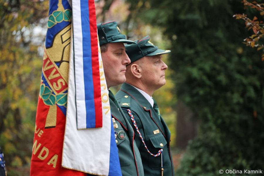 Zbranim občankam in občanom, veteranom in praporščakom se je pridružil slavnostni govornik, župan Matej Slapar skupaj s predsednikom Območnega združenja veteranov vojne za Slovenijo Kamnik – Komenda Demitrijem Perčičem in predsednikom Policijskega veteranskega društva Sever Kamnik Jankom Brinovcem ter ostalimi predsedniki in predstavniki veteranskih in domoljubnih organizacij Občine Kamnik.