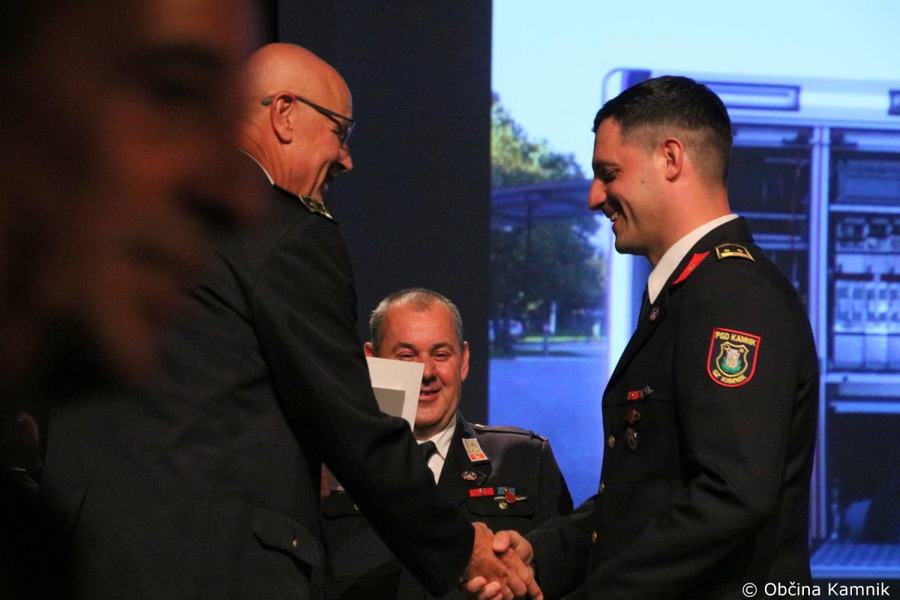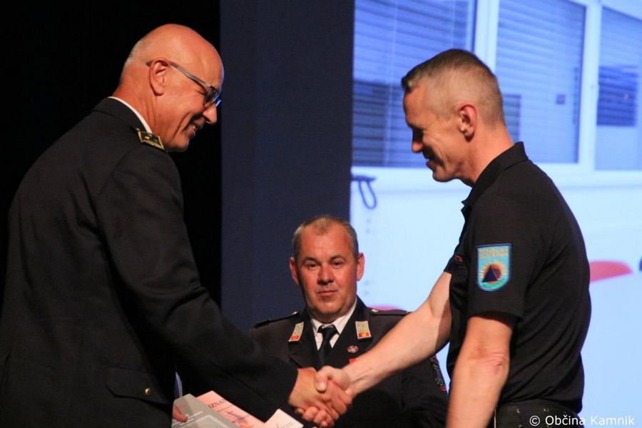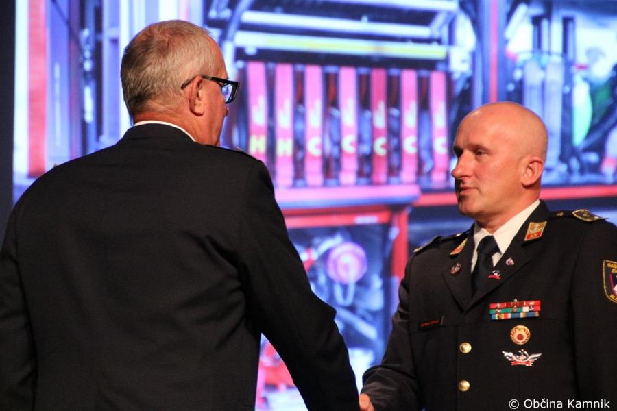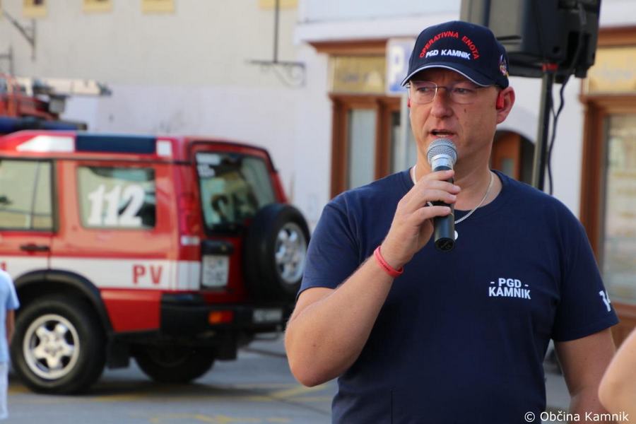 »Tudi Občina Kamnik finančno podpira javno gasilsko službo, ki je vključena v Gasilsko zvezo Kamnik. Ker je pomembno tudi to, v kakšnih prostorih delujete, naj nekaj besed namenim še temu področju. V lanskem letu smo v prizidku, ki ga je delno financirala Občina Kamnik, delno pa vaše društvo, uredili tudi štabno sobo Občinskega štaba Civilne zaščite Kamnik. Nove prostore ste uredili tudi za Gasilsko zvezo Kamnik ter nove društvene prostore, namenjene tudi podpori vodenja ob večjih intervencijah. Oprema štabne sobe Občinskega štaba Civilne zaščite je bila financirana v okviru evropskega projekta MUHA, v okviru katere smo prejeli novo strojno in programsko IT-opremo, s komunikacijskimi napravami ter s tehničnimi sredstvi za vodenje intervencij ob večjih naravnih in drugih nesrečah, pa bomo ob odzivu nanje skupaj lahko še bolj učinkoviti in še bolj uspešni. Kako pomembni so novi, dodatni prostori, se je pokazalo prav v času epidemije COVID-19, saj je Občinski štab Civilne zaščite v tem negotovem obdobju lahko delo opravljal še bolj učinkovito in nemoteno. Pri tem naj poudarim, da ste tudi gasilke in gasilci Prostovoljnega gasilskega društva Kamnik aktivno sodelovali z Občinskim štabom Civilne zaščite in nudili pomembno logistično pomoč. Za to vam iskrena HVALA. Brez premisleka ste nam priskočili na pomoč, ko smo vas potrebovali. Prepričan sem, da vam bodo novi prostori omogočali lažje vodenje intervencij ob vseh večjih naravnih in drugih nesrečah, kot pa sem že dejal, tako kot je šel razvoj gasilstva naprej, se je sedaj z novimi prostori in novo opremo posodobil tudi sistem varstva pred požarom in varstva pred naravnimi in drugimi nesrečami. Občina Kamnik vsako leto prisluhne potrebam lokalne javne gasilske službe in finančno podpira investicijsko nabavo ter nabavo opreme za potrebe javne službe varstva pred naravnim nesrečami, ki se financirajo tudi iz sredstev civilne zaščite, in sicer za namen dela opreme gasilskih vozil ter opreme za komunikacijo in prvo pomoč. In tudi v prihodnje bomo s finančnimi sredstvi pomagali pri razvoju in ustrezni opremljenosti, da boste gasilke in gasilci lahko kakovostno opravljali svoje poslanstvo. V zadnjih štirih je Občina Kamnik naredila pomemben korak pri razvoj celotnega sistema varstva pred nesrečami. Povečali smo sredstva za delovanje lokalne gasilke službe, delno pa so bila povečana sredstva tudi za sistem zaščite, reševanja in pomoči.«