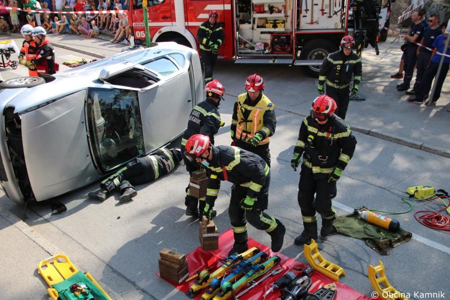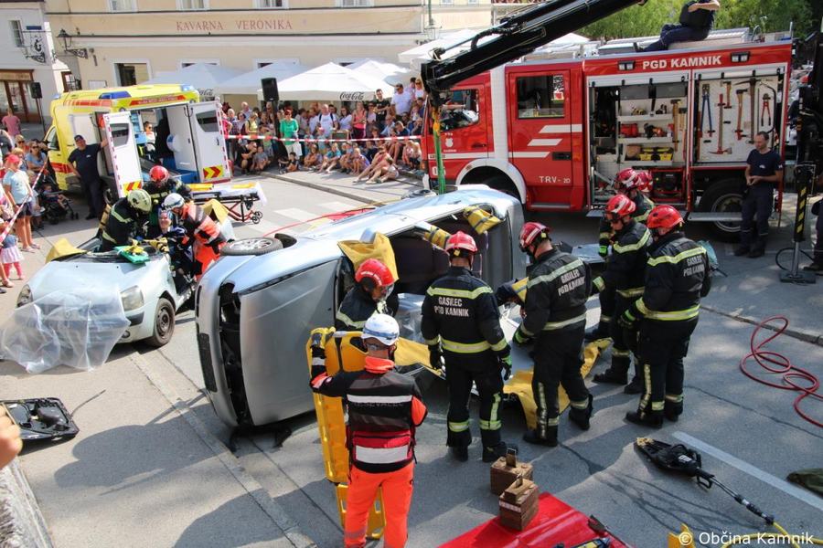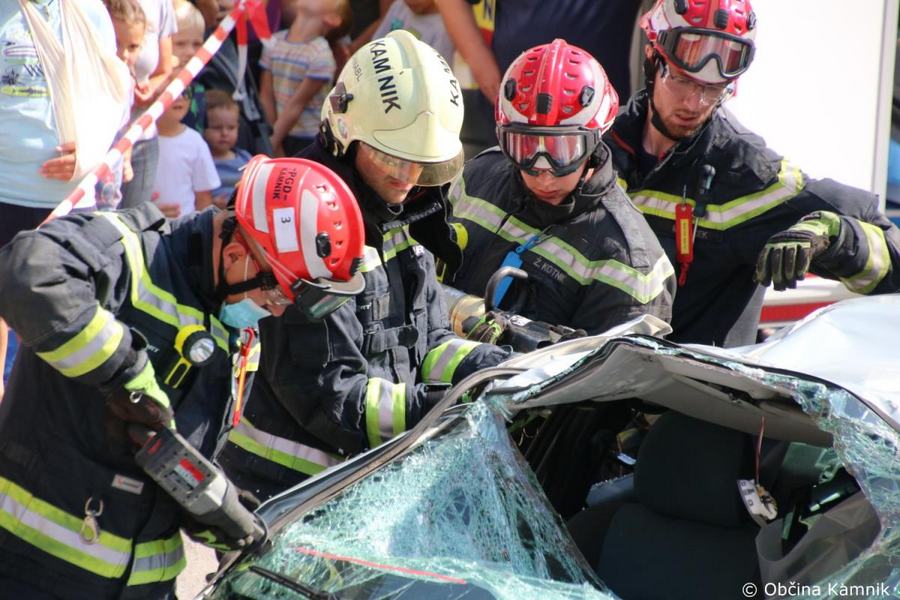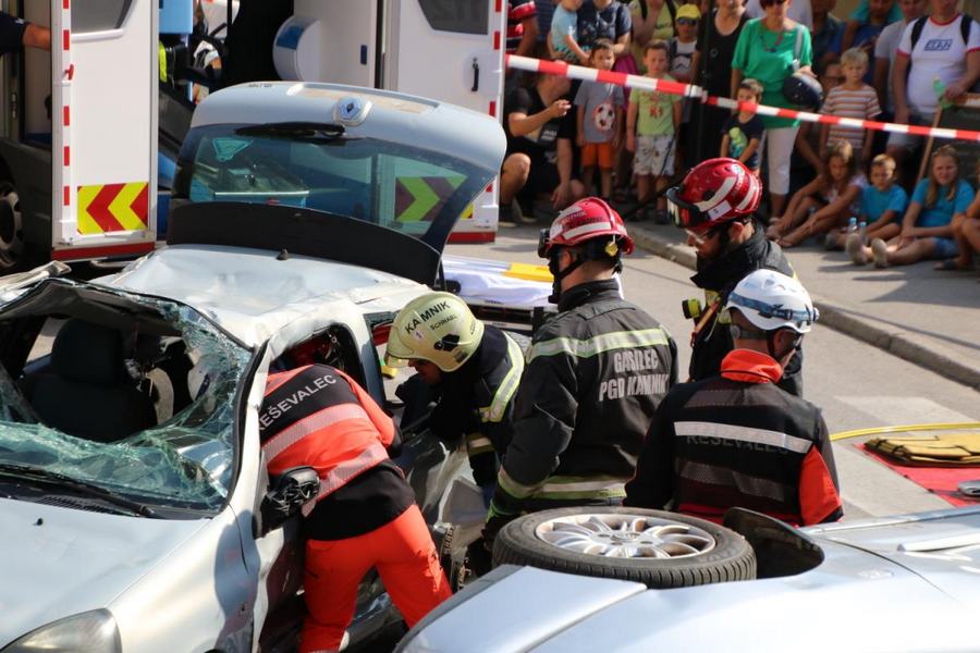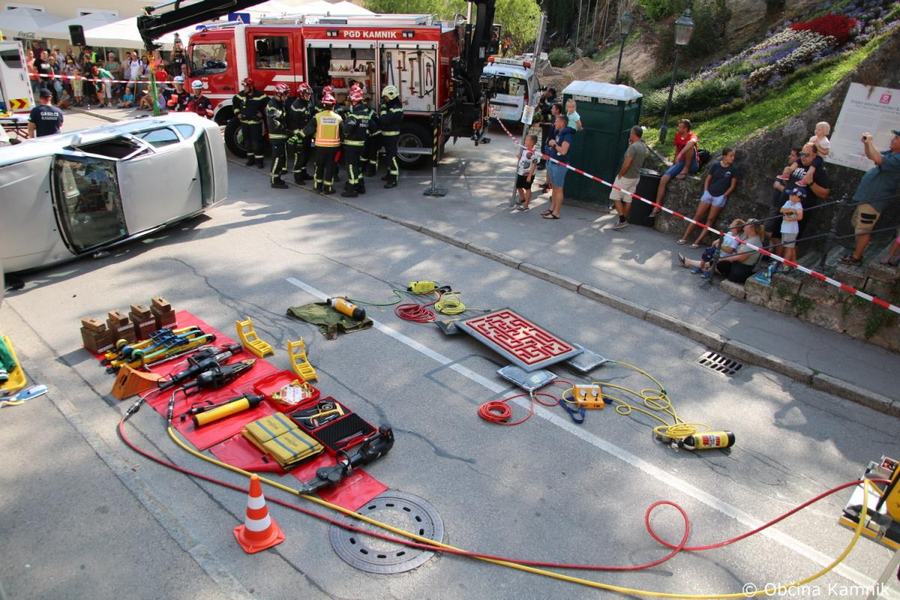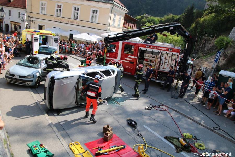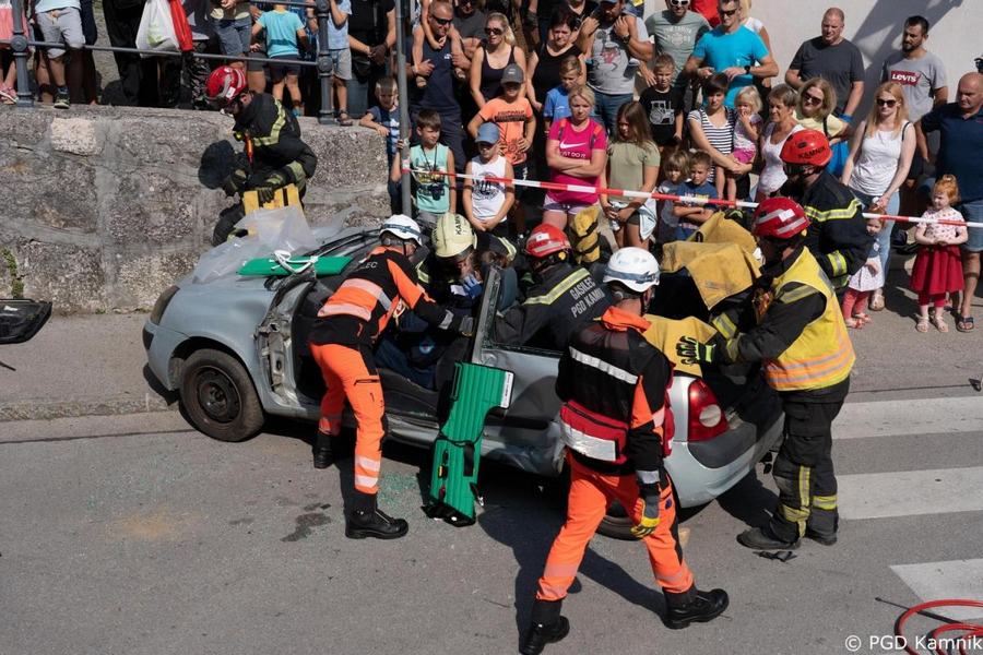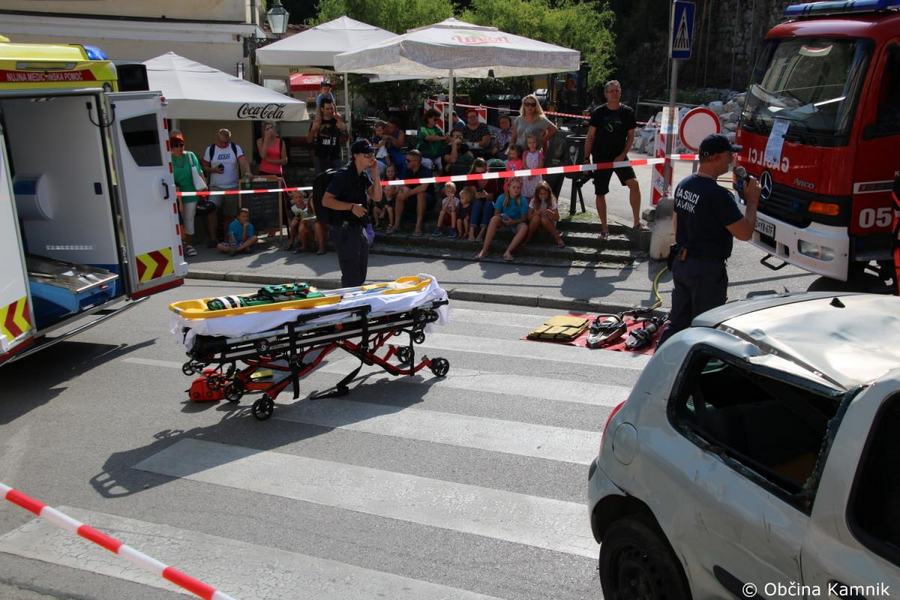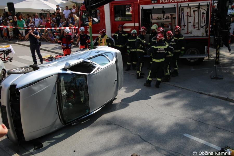 Predstavitev aktivnosti je bil pripravljena tudi za najmlajše, tisti najpogumnejši so si lahko s pomočjo avtolestve center Kamnika ogledali iz zraka. V Samčevem predoru je ob 10.30 potekala prikazna vaja prometna nesreča. Slednjo je predstavil Tomas Felkar, vodja intervencije je bil Rok Dobovšek, sodelovalo je 8 gasilcev Prostovoljnega gasilskega društva Kamnik in 2 reševalca Zdravstvenega doma dr. Julija Polca Kamnik. V nesreči sta bili udeleženi dve vozili, kjer je ena oseba utrpela poškodbe hrbtenice, druga oseba pa ni bila poškodovana.