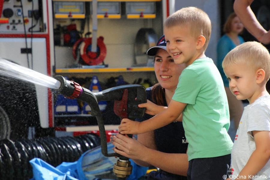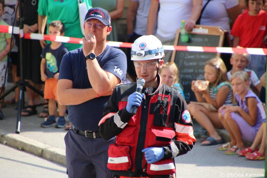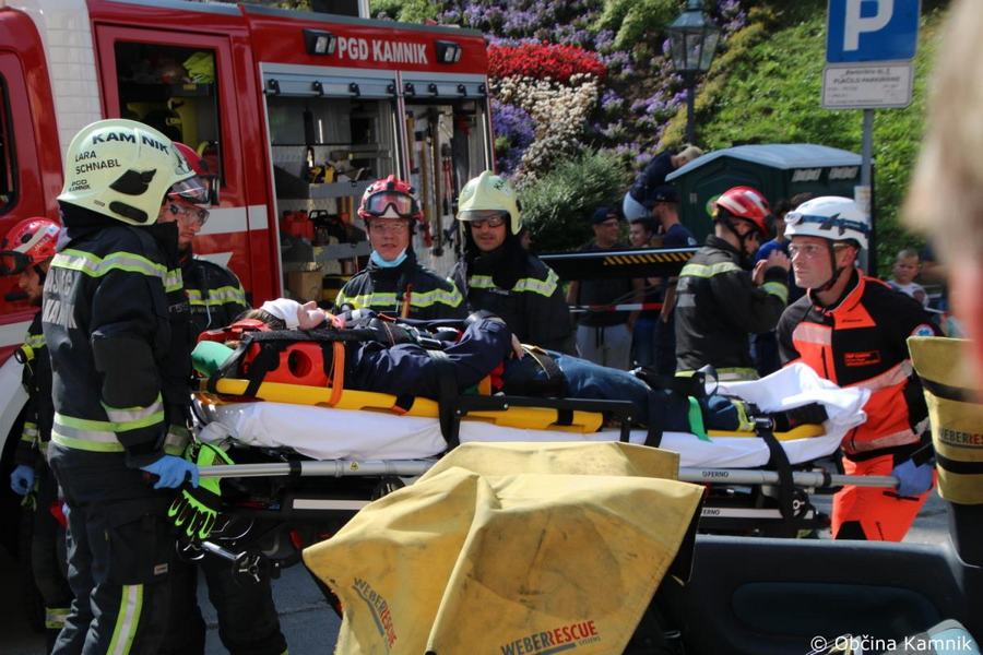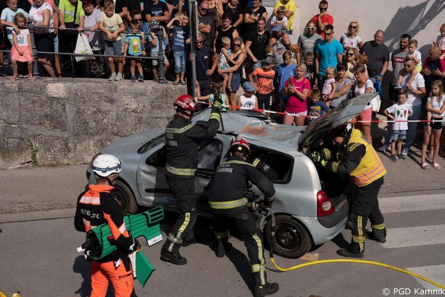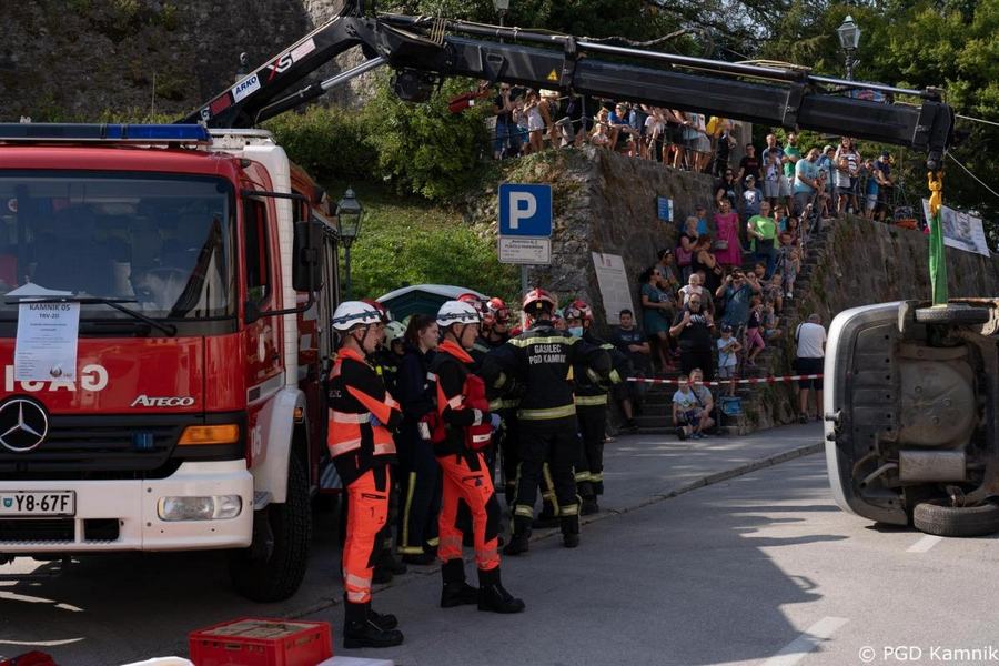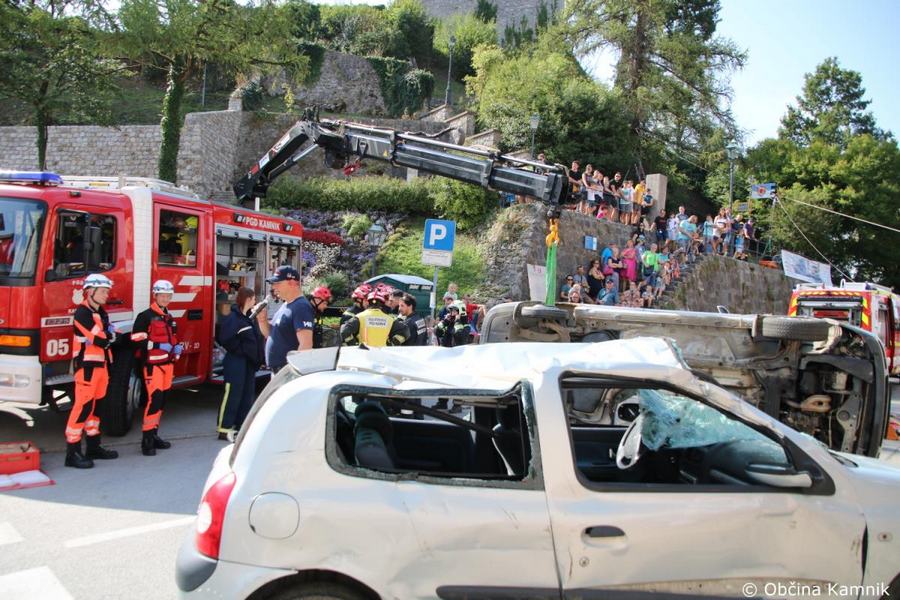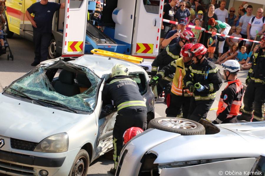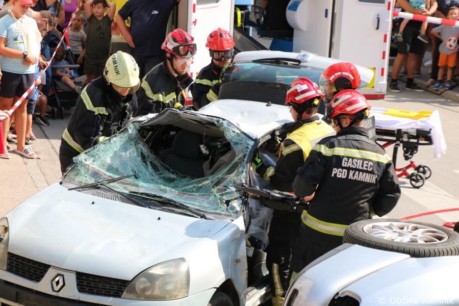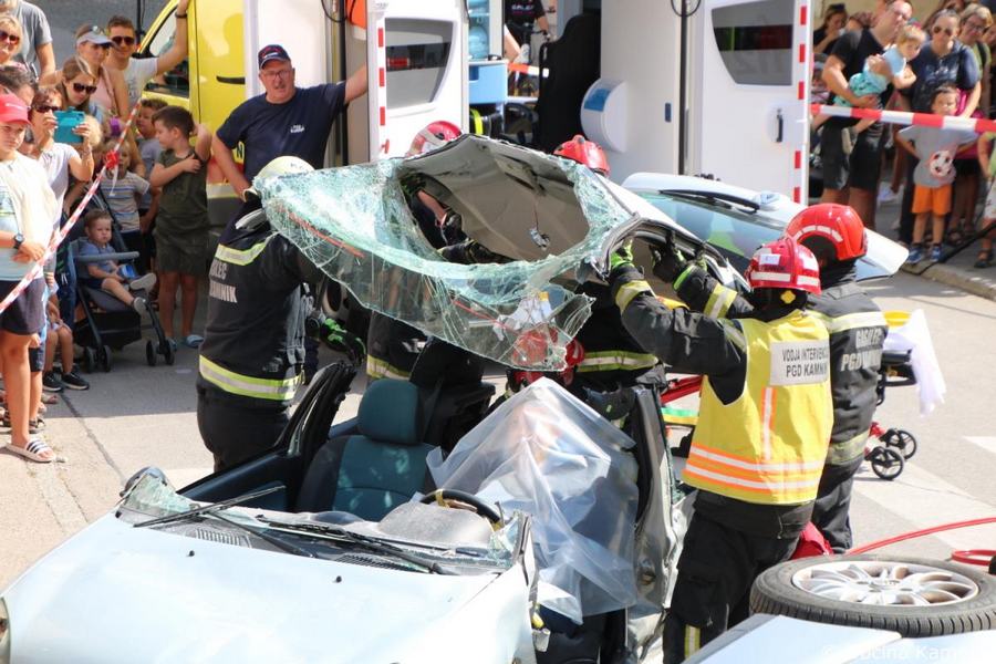 Predstavitev aktivnosti je bil pripravljena tudi za najmlajše, tisti najpogumnejši so si lahko s pomočjo avtolestve center Kamnika ogledali iz zraka. V Samčevem predoru je ob 10.30 potekala prikazna vaja prometna nesreča. Slednjo je predstavil Tomas Felkar, vodja intervencije je bil Rok Dobovšek, sodelovalo je 8 gasilcev Prostovoljnega gasilskega društva Kamnik in 2 reševalca Zdravstvenega doma dr. Julija Polca Kamnik. V nesreči sta bili udeleženi dve vozili, kjer je ena oseba utrpela poškodbe hrbtenice, druga oseba pa ni bila poškodovana.