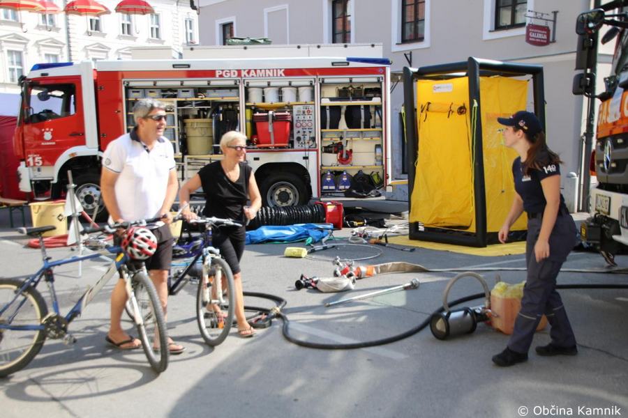 Od 9. ure dalje smo si lahko na Glavnem trgu ogledali predstavitev dejavnosti, opreme in voznega parka društva. Dogodku je prisostvoval tudi župan Matej Slapar skupaj s predsednikom in poveljnikom Prostovoljnega gasilskega društva Kamnik Jožetom Oblakom in Janezom Vavpetičem.
