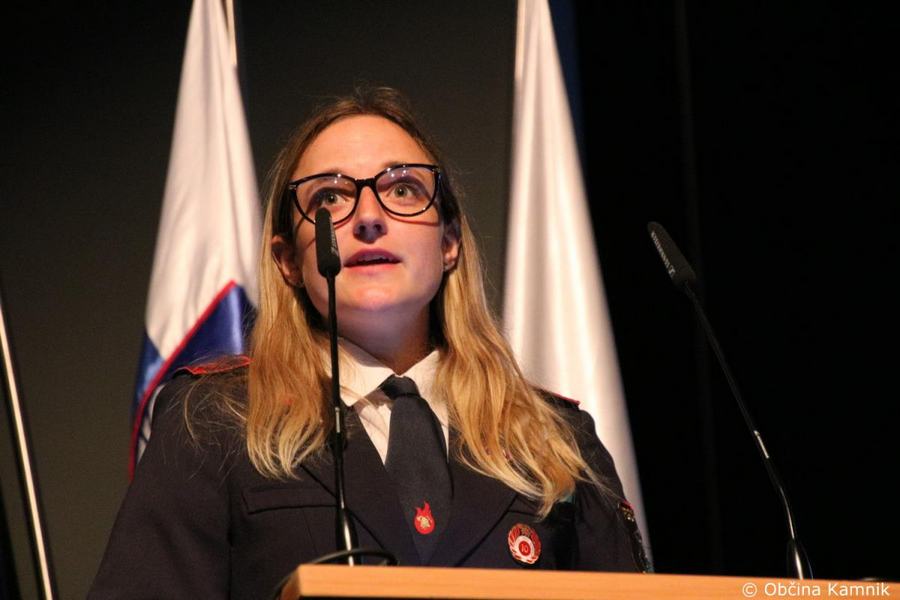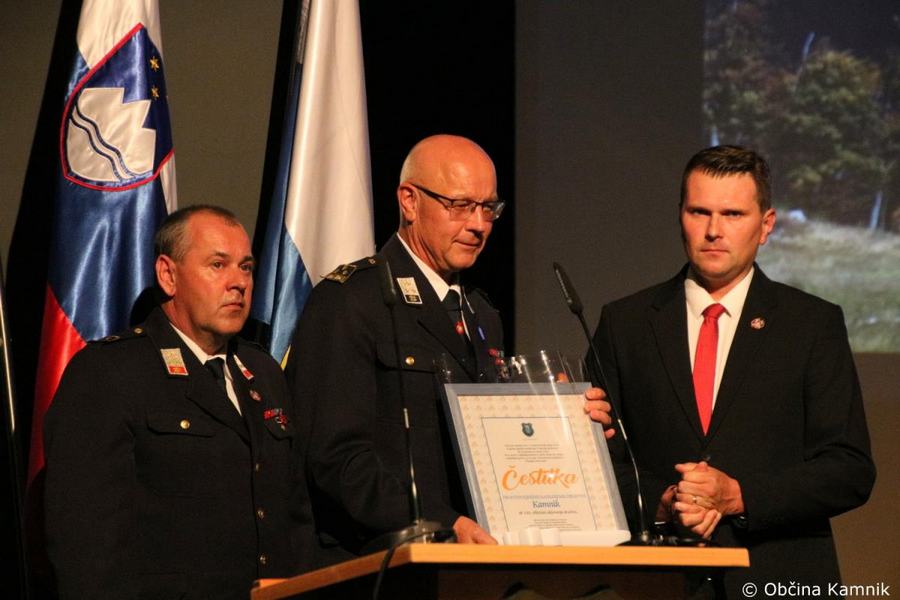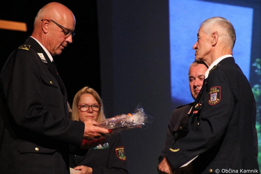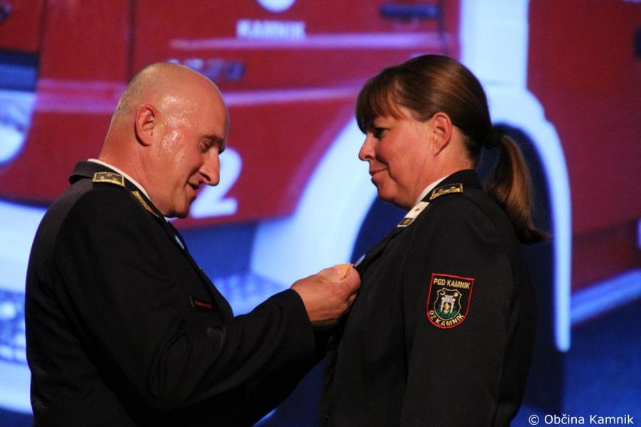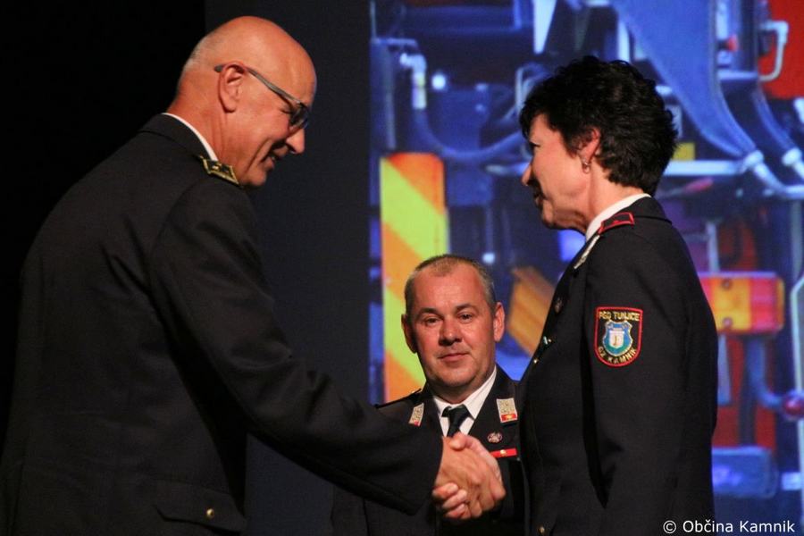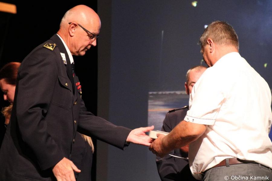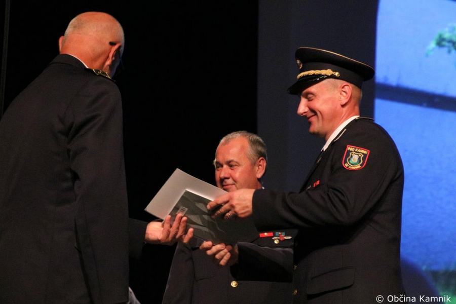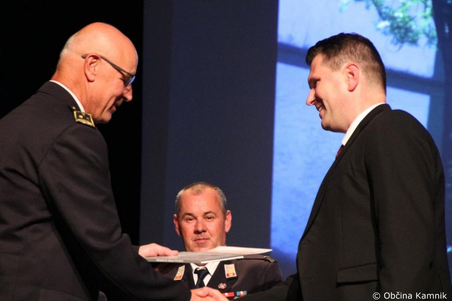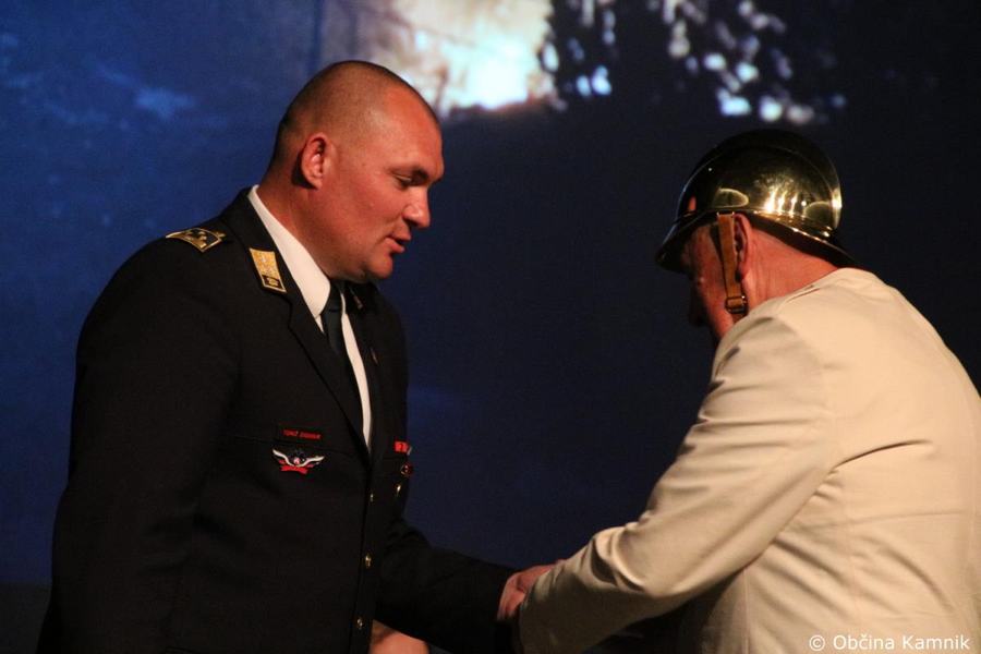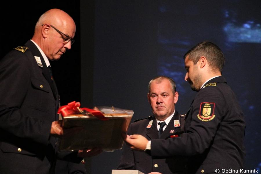 »Gasilke in gasilci PGD Kamnik ste tam, kjer vas potrebujemo, zato je skupek vseh dejavnikov še kako pomemben za uspešno izvedeno intervencijo. Niso dovolj le srčnost, predanost in pogum, mislim, da je pomembno tudi to, kdo vas vodi, zato naj se ob tej priložnosti še posebej zahvalim predsedniku društva tovarišu Jožetu Oblaku in poveljniku tovarišu Janezu Vavpetiču. Pomembna je sodobna oprema gasilcev, pomembno je znanje, ne nazadnje pomembna je tudi sreča, da se intervencija razplete v dobro vseh, a še bolj pomembno je tisto, kar gasilci nosite v srcu. Pogum, predanost in tovarištvo. Vi zmorete vse, zato še enkrat HVALA. Ker življenje gasilca in reševanje življenj ter premoženja ljudi zahteva poln angažma, pa naj se ob tej priložnosti zahvalim tudi vašim družinam, ki nemalokrat v skrbeh čakajo na to, da se vrnete nazaj v naročje toplega doma. Ob tej priložnosti vam izrekam še enkrat HVALA in vse najboljše ob 140. obletnici delovanja vašega društva. Vljudno pa vabim predsednika PGD Kamnik tovariša Jožeta Oblaka in poveljnika PGD Kamnik Janeza Vavpetiča, da se mi pridružita tukaj na odru, kjer jima v imenu Občine Kamnik predajam zahvalo Prostovoljnemu gasilskemu društvu Kamnik ob 140. obletnici delovanja. Iskrena HVALA vsem članicam in članom, ker požrtvovalno in s hrabrimi dejanji nesebično skrbite za dobrobit naših občank in občanov. Hvala, ker z vrednotami solidarnosti, požrtvovalnosti in tovarištva pomembno prispevate k razvoju, krepitvi, organiziranosti in delovanju gasilske službe na Kamniškem. Z gasilskim pozdravom »Na pomoč!«
