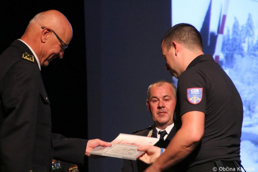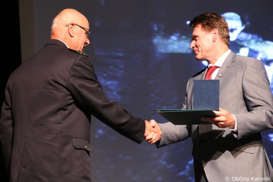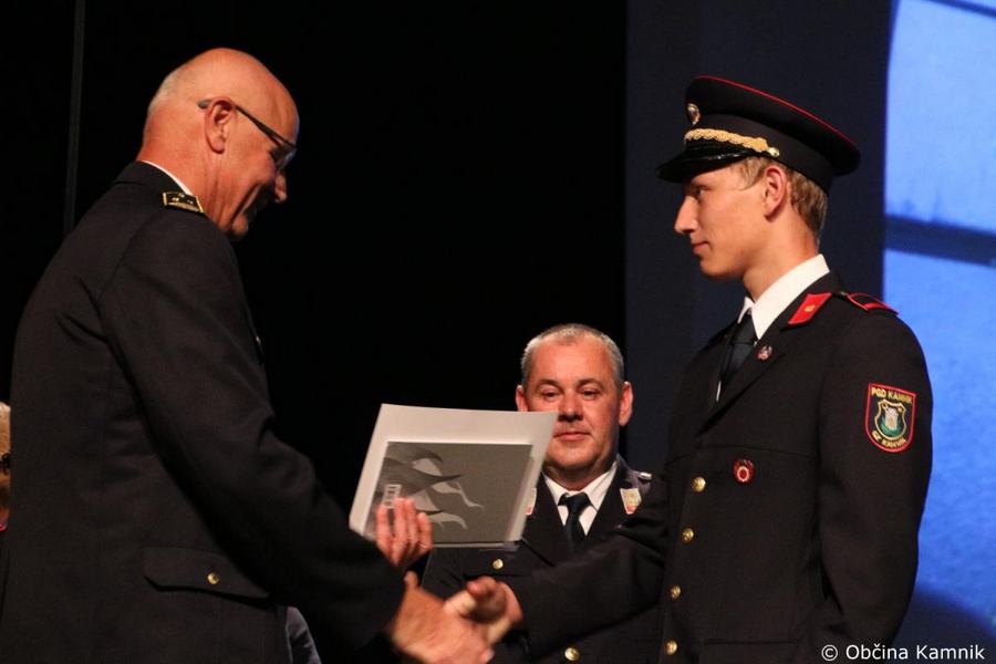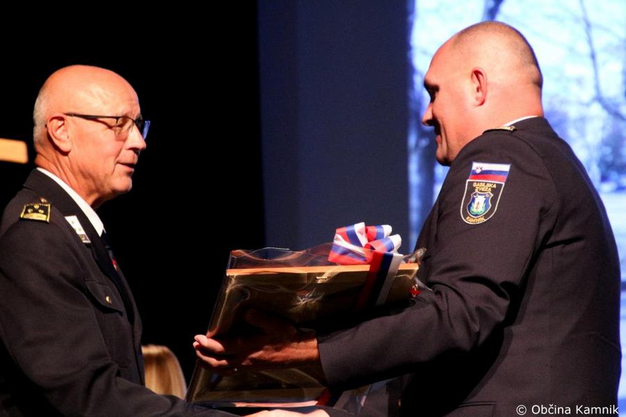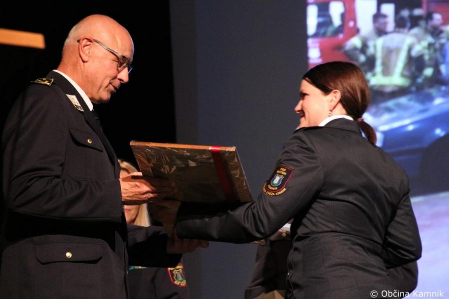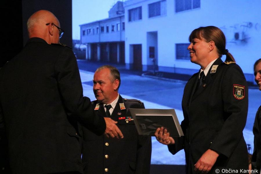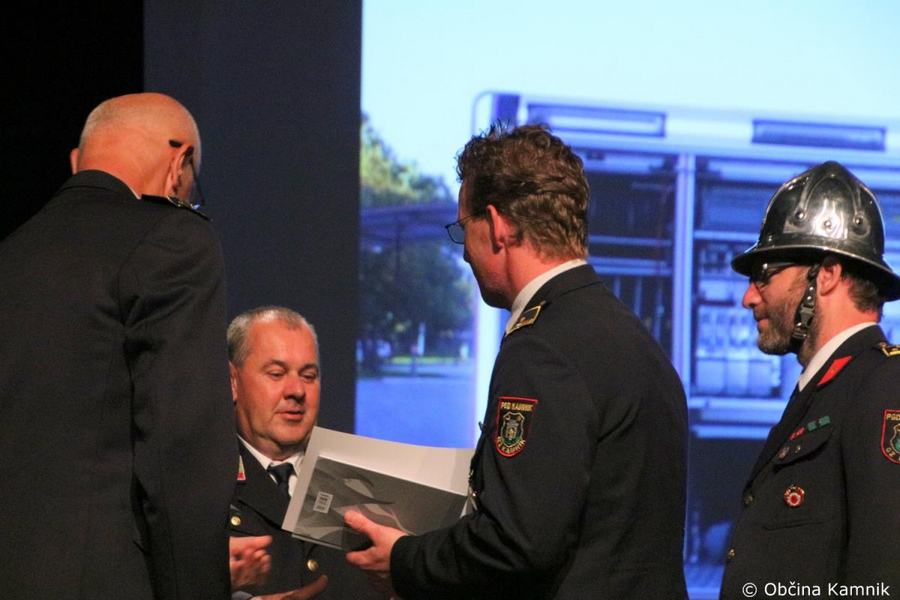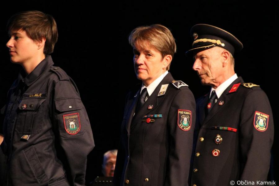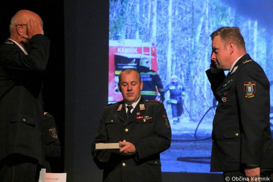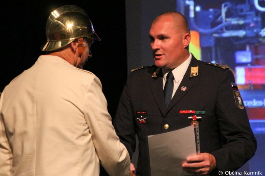 »Gasilke in gasilci PGD Kamnik ste tam, kjer vas potrebujemo, zato je skupek vseh dejavnikov še kako pomemben za uspešno izvedeno intervencijo. Niso dovolj le srčnost, predanost in pogum, mislim, da je pomembno tudi to, kdo vas vodi, zato naj se ob tej priložnosti še posebej zahvalim predsedniku društva tovarišu Jožetu Oblaku in poveljniku tovarišu Janezu Vavpetiču. Pomembna je sodobna oprema gasilcev, pomembno je znanje, ne nazadnje pomembna je tudi sreča, da se intervencija razplete v dobro vseh, a še bolj pomembno je tisto, kar gasilci nosite v srcu. Pogum, predanost in tovarištvo. Vi zmorete vse, zato še enkrat HVALA. Ker življenje gasilca in reševanje življenj ter premoženja ljudi zahteva poln angažma, pa naj se ob tej priložnosti zahvalim tudi vašim družinam, ki nemalokrat v skrbeh čakajo na to, da se vrnete nazaj v naročje toplega doma. Ob tej priložnosti vam izrekam še enkrat HVALA in vse najboljše ob 140. obletnici delovanja vašega društva. Vljudno pa vabim predsednika PGD Kamnik tovariša Jožeta Oblaka in poveljnika PGD Kamnik Janeza Vavpetiča, da se mi pridružita tukaj na odru, kjer jima v imenu Občine Kamnik predajam zahvalo Prostovoljnemu gasilskemu društvu Kamnik ob 140. obletnici delovanja. Iskrena HVALA vsem članicam in članom, ker požrtvovalno in s hrabrimi dejanji nesebično skrbite za dobrobit naših občank in občanov. Hvala, ker z vrednotami solidarnosti, požrtvovalnosti in tovarištva pomembno prispevate k razvoju, krepitvi, organiziranosti in delovanju gasilske službe na Kamniškem. Z gasilskim pozdravom »Na pomoč!«