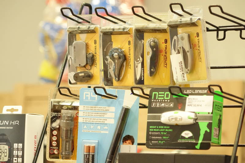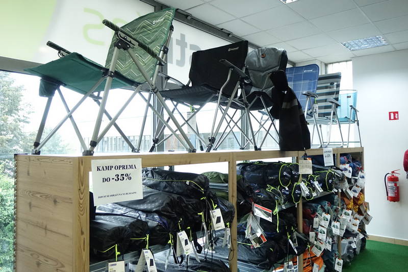 Tako nas ob vstopu v sodobno urejeno trgovino presenetijo oblačila namenjena občasnim ali najbolj zagnanim rekreativcem in pohodnikom; navdušeni boste nad vrhunskimi oblačili NorthFinder, Fjall Raven, Colmar, Hannah, ne manjka niti kolekcija izdelkov CR7 Cristiano Ronaldo. V njih bližini pozornost izziva še izredno udobna obutev za pohodništvo in rekreacijo znamk HanWeg in Treksta.