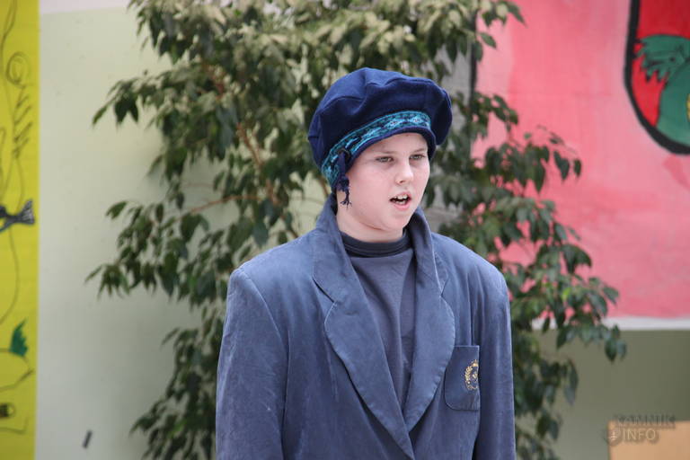 Osmošolci so pri pouku slovenskega jezika obravnavali balado Povodni mož, Nika Kvas nam jo je doživeto recitirala. Potem so se pojavili pričevalci plesa na Starem trgu: Nik Bencek kot godrnjavi Ljubljančan, ki nima miru zaradi hrupnega plesa , Eva Ramšak v vlogi ljubosumne deklice in Bor Peterlin , ki dogajanje okoli Ljubljanice opazuje kot ribič. Besedila so zapisali osmošolci sami.
