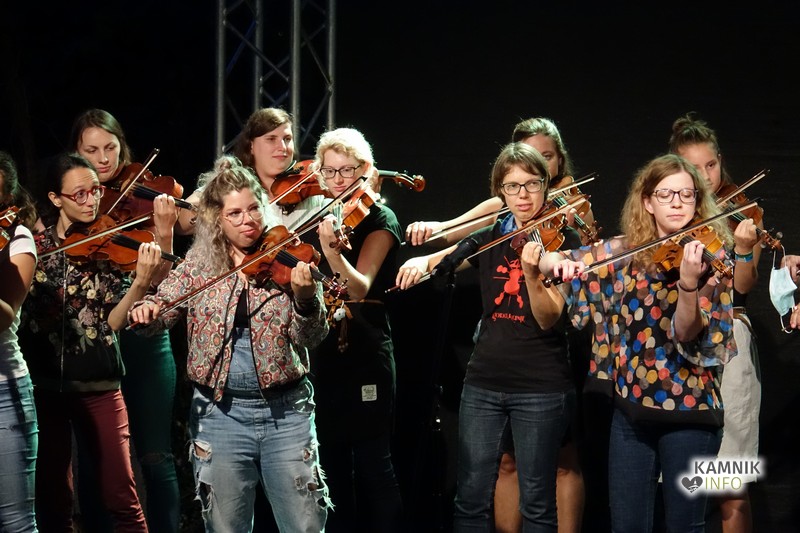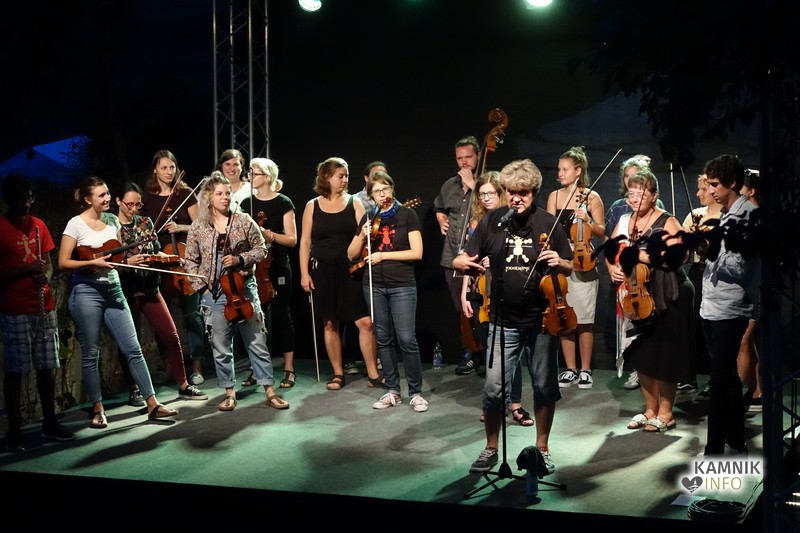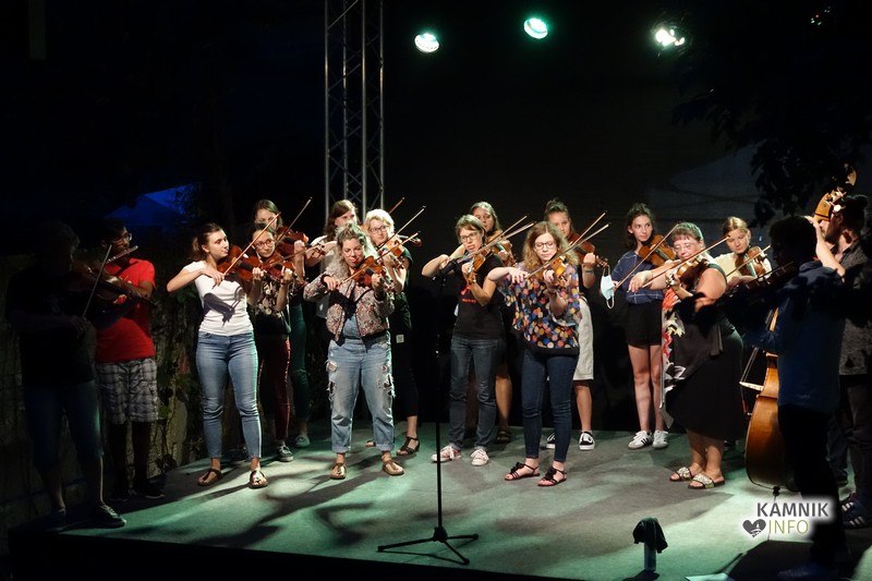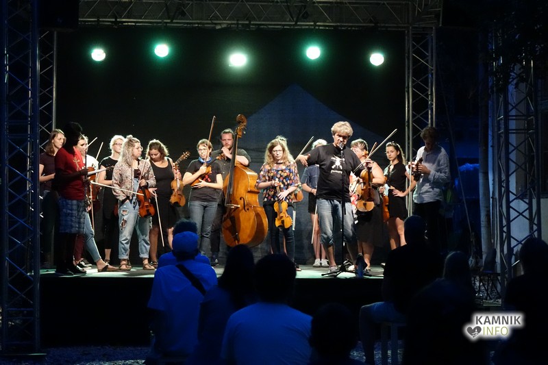 V kulturni četrti Barutana je včeraj oder zavzela številčna skupina Godalkarjev, ki so preigravali note in si podajali skladbe tako, kot so si jih pred desetimi leti. Oder je bil poln ravno zaradi dejstva, da mineva deset let odkar so se prvi člani skupine našli med seboj prav na festivalu Kamfest – včeraj pa so bili na odru vsi, tudi tisti, ki so bili pionirji Fiddle Ganga.