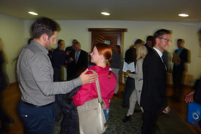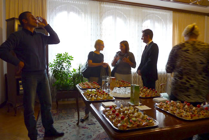 - Priložnostna malica ob koncu prve seje. Pozna se recesija, kajti v času, ko so izhajale še Stran(j)ske novice, je bilo na mizi tudi vino.
