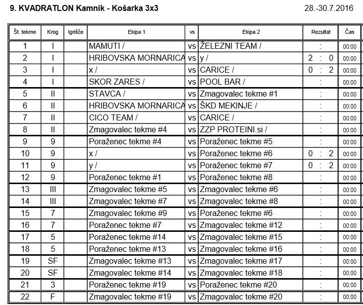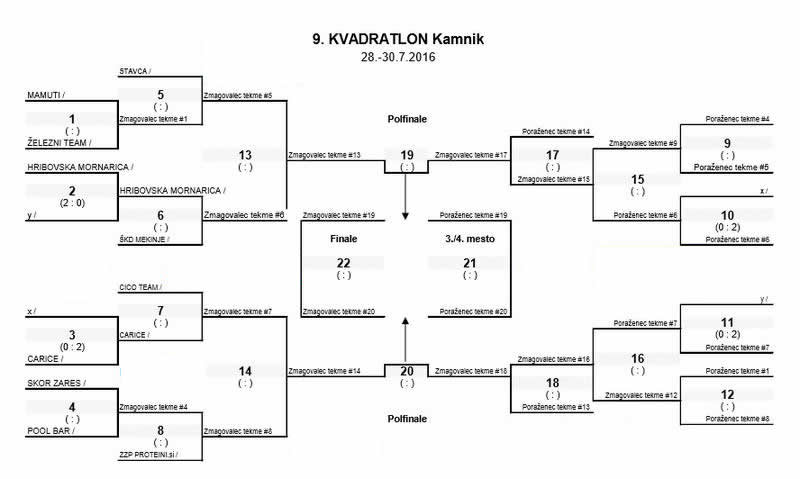 Na 9. tradicionalnem Kvadratlonu, edinstveni prireditvi v Sloveniji, ki ga organizira Športna zveza Občin Kamnik, s pomočjo Občine Kamnik in Zavoda za turizem in šport v Občini Kamnik, Calcit Volleyballa, Vaterpolskega društva Kamnik ter sponzorjev, se letos meri deset ekip.