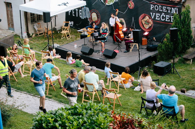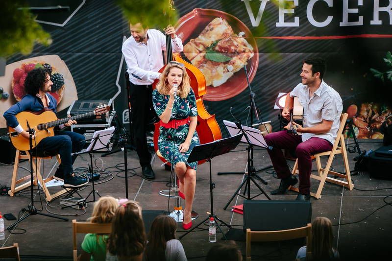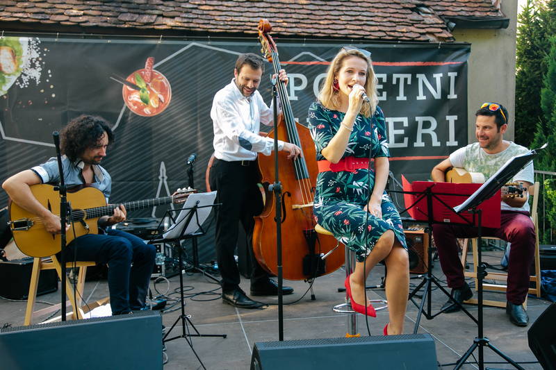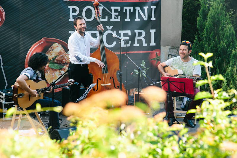 Danes, 10. julija smo ob prijetni večerji v zavetju parka Evropa lahko uživali ob živi glasbi in družbi glasbene skupine Swingatan, ki je akustični kvintet, sestavljen iz violine, dveh kitar, klavirske harmonike in kontrabasa, ki igra avtorsko glasbo, slogovno blizu swingu in bossa novi, ter gipsy jazz standarde po vzoru S. Grapellija in J. Reinharda, z dodatkom harmonike. Swingatan pa je poskrbel za presenečenje večera, saj je bila njihova posebna glasbena gostja Ani Frece, udeleženka tretje sezone priljubljenega šova Znan obraz ima svoj glas, ki tudi sicer nastopa skupaj s glasbeniki iz skupine Swingatan v svoji glasbeni skupini Hotel za srečo.