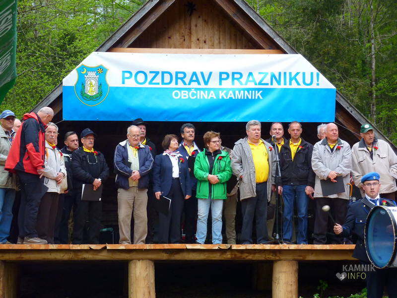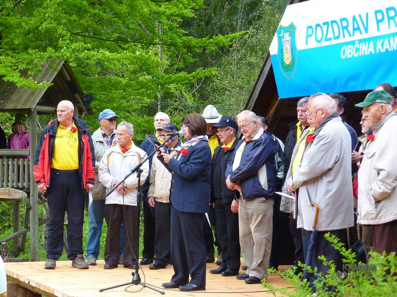 Prisotne, ki so, najbrž tudi zaradi precej neprijaznega vremena, komaj dodobra napolnili vrt planinskega doma, je najprej pozdravil kamniški župan Marjan Šarec, po pesmi DKD Solidarnost, pa je besedo prevzel slavnostni govornik Tone Ftičar, ki je v svojem zanimivem in kulturno obarvanem govoru naredil nekakšen zgodovinski prerez prvomajskih praznovanj v Kamniški Bistrici ter ob tem nanizal vrsto pozabljenih, pa tudi namenoma pozabljenih in zamolčanih dogodkov iz zgodovine kamniških oz. bistriških prvomajskih srečanj. (Celoten govor, ki mu je bilo nedvomno vredno prisluhniti, bomo objavili tudi na naših spletnih straneh, če ga le, oz. ko ga dobimo.)