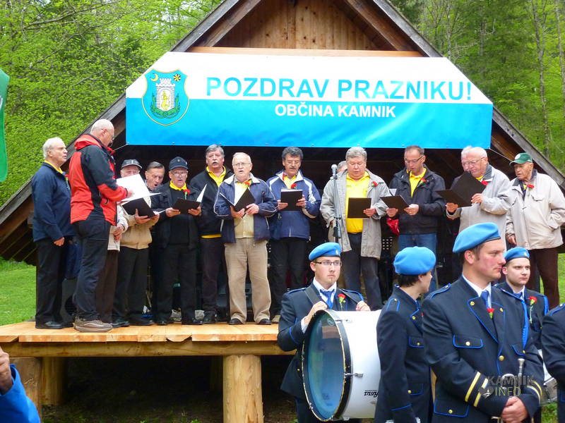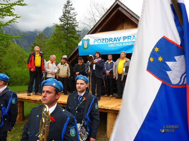 Osrednja slovesnost ob prvem maju se je, pod temno kopreno z dežjem grozečih meglic, ob Domu v Kamniški Bistrici, pričela z Internacionalo v izvedbi Mestne godbe Kamnik in DKD Solidarnost.