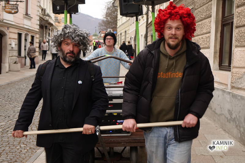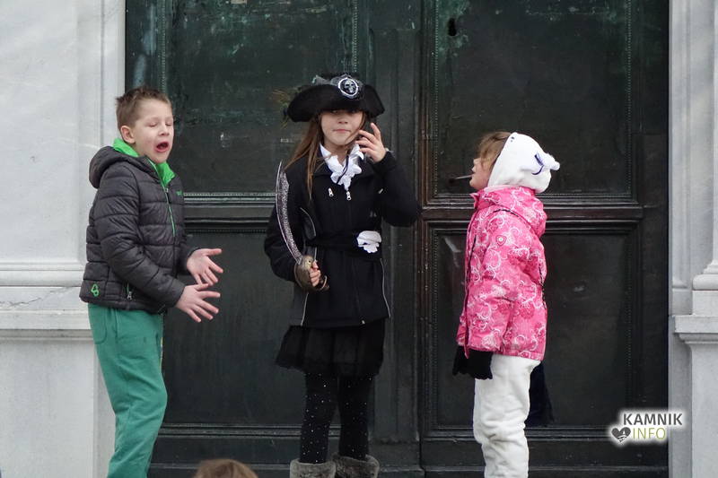 Kakorkoli že, zime, ki je kamniškemu karnevalu danes nekajkrat zagrozila s prav zoprnim mrzlim vetrom, se kamniške maškare in maškarice niso ustrašile, ampak so veselo rajale na Glavnem trgu.