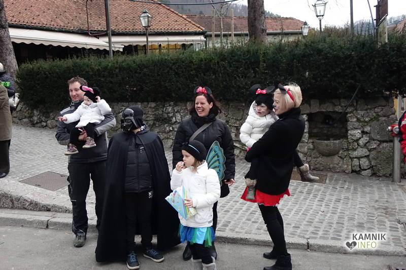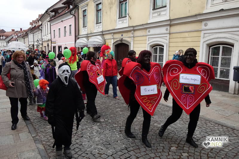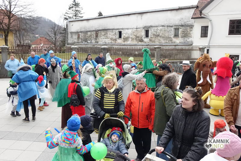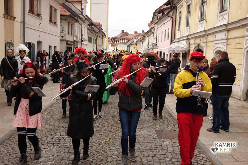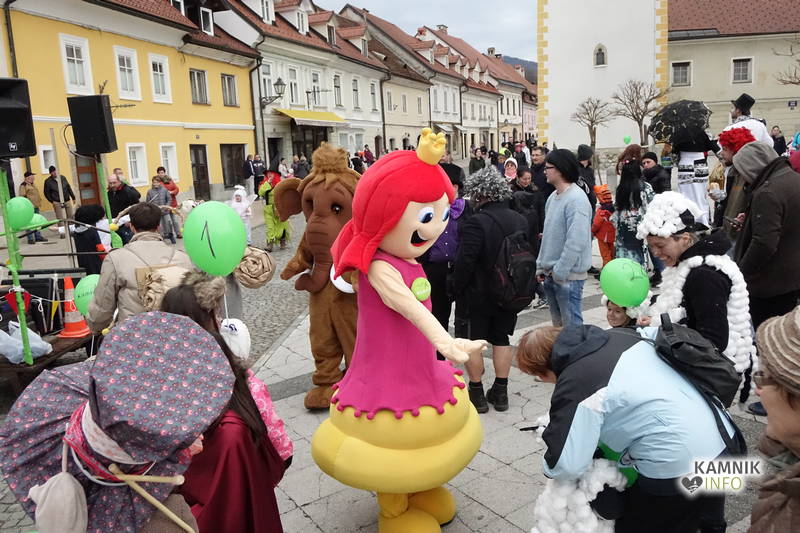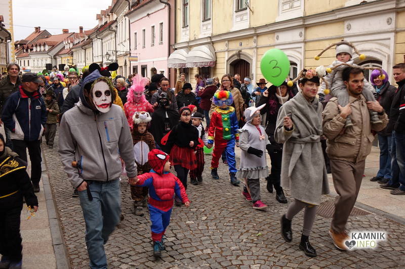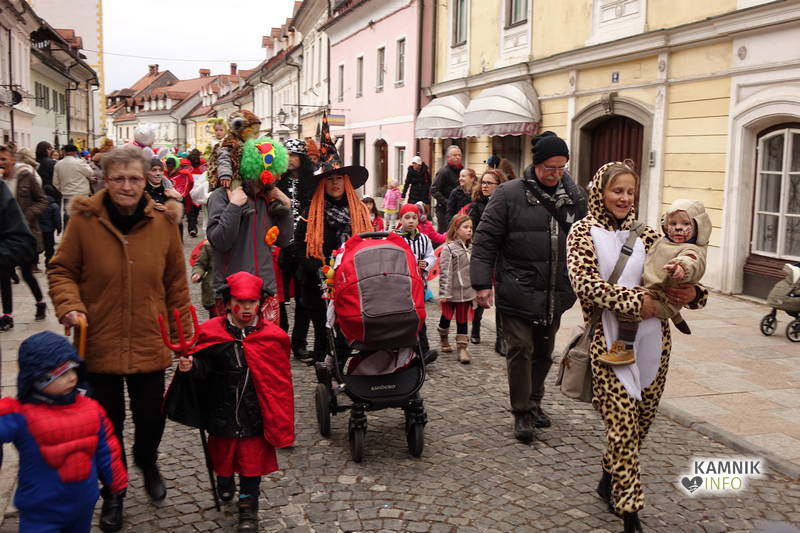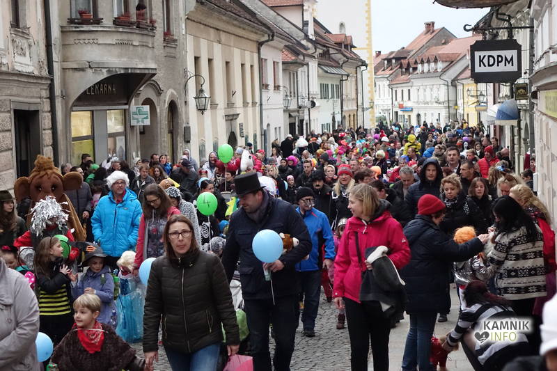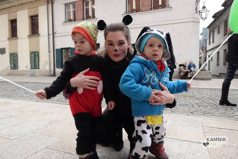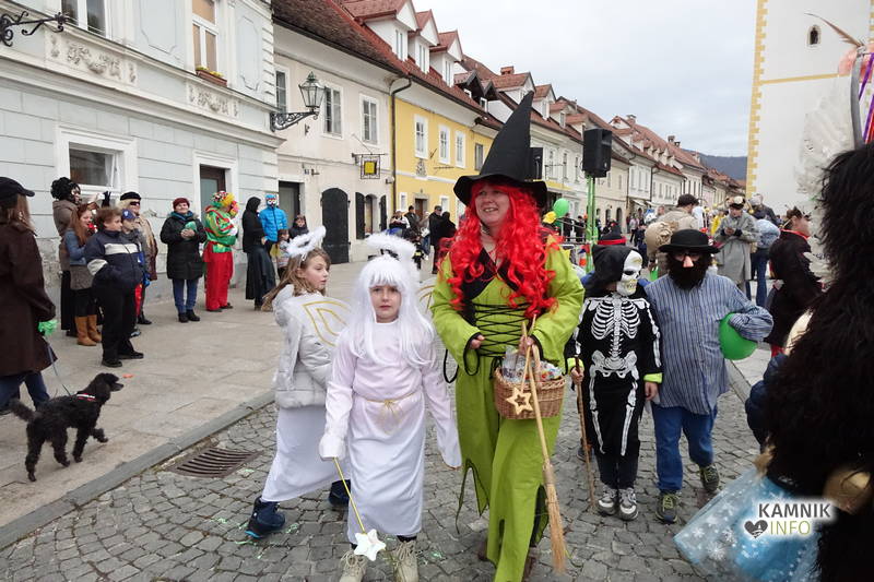 Maškarice in tudi nekoliko večje maškare so se začele okrog pol četrte popoldne zbirati na Šutni, od koder so uro kasneje, v spremstvu kamniških godbenikov in mažoretk, v živopisni povorki krenile proti Glavnemu trgu, kjer so jih pričakali krofi, zabavni program in izbiranje najlepših mask.