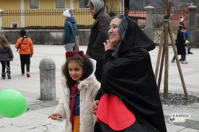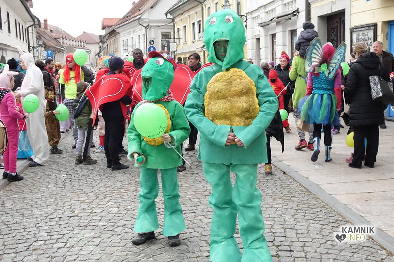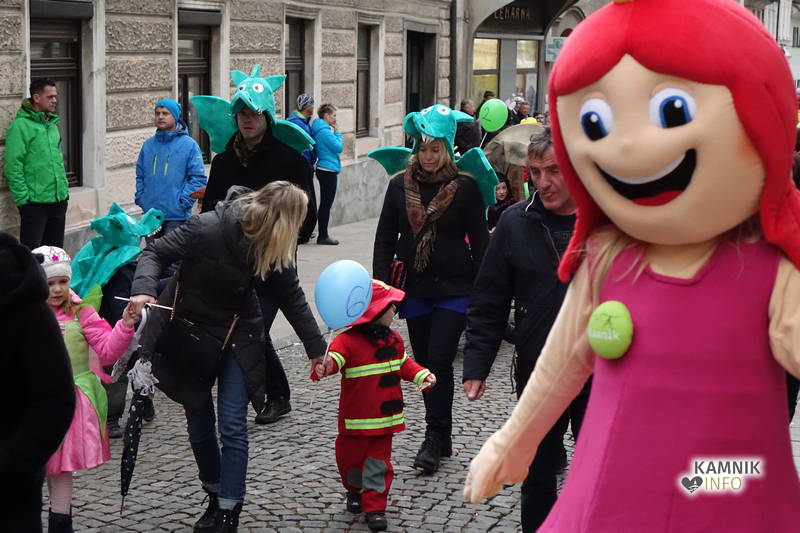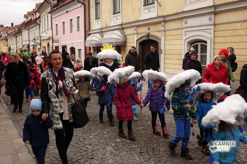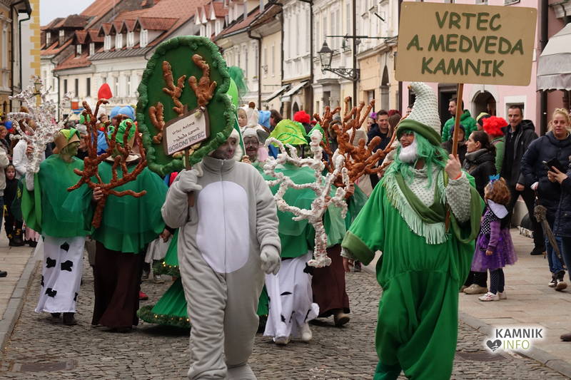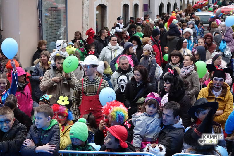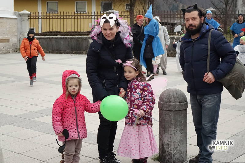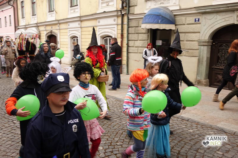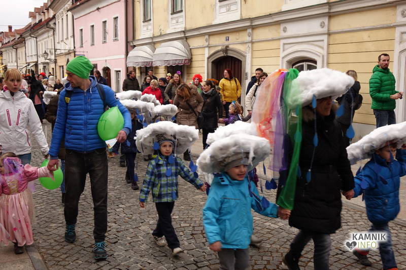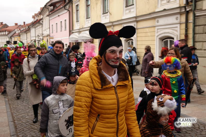 Maškarice in tudi nekoliko večje maškare so se začele okrog pol četrte popoldne zbirati na Šutni, od koder so uro kasneje, v spremstvu kamniških godbenikov in mažoretk, v živopisni povorki krenile proti Glavnemu trgu, kjer so jih pričakali krofi, zabavni program in izbiranje najlepših mask.