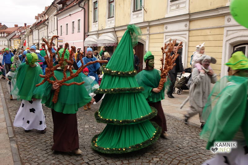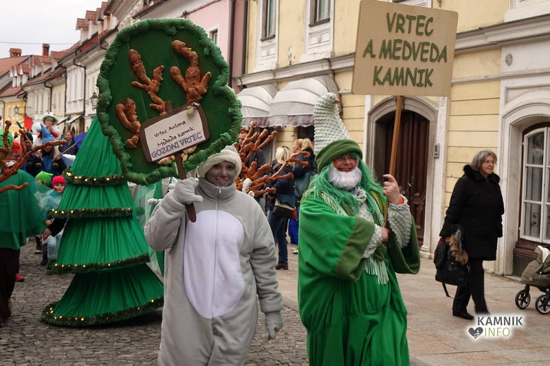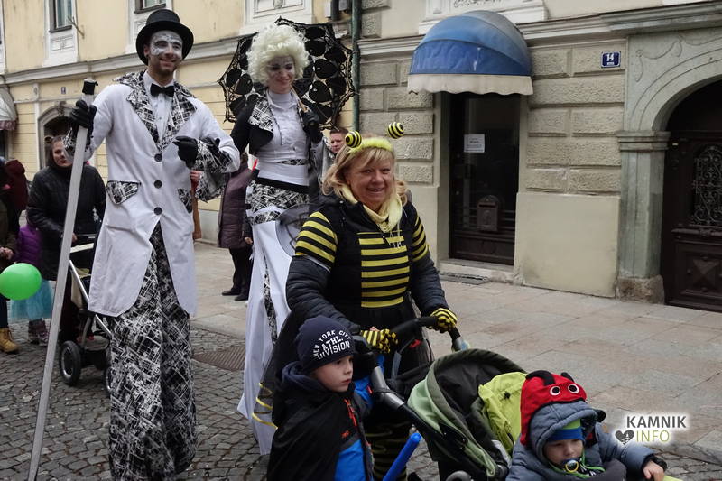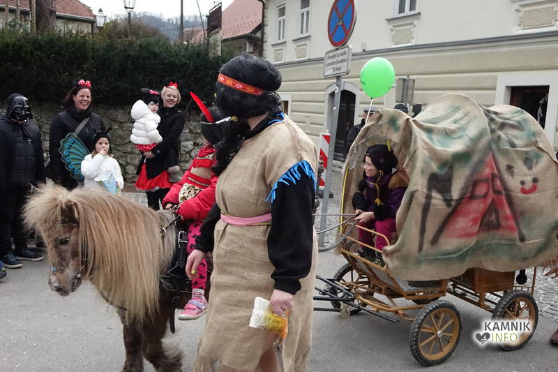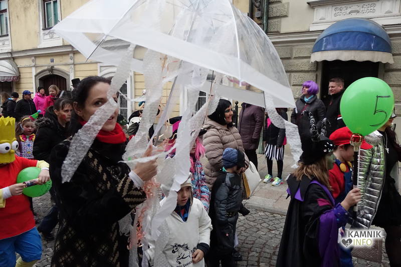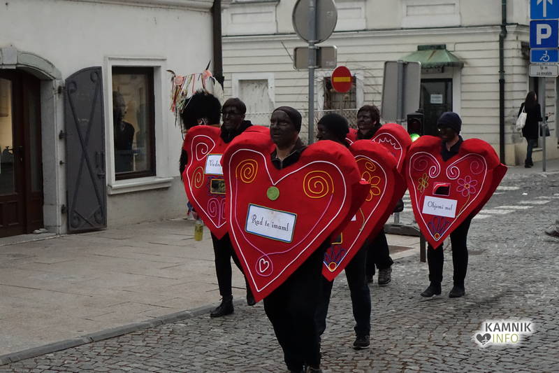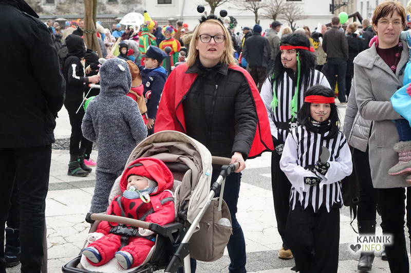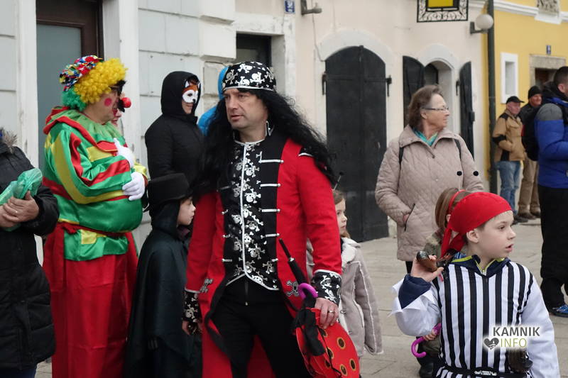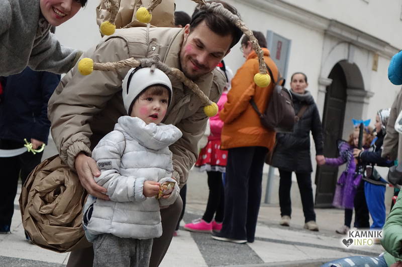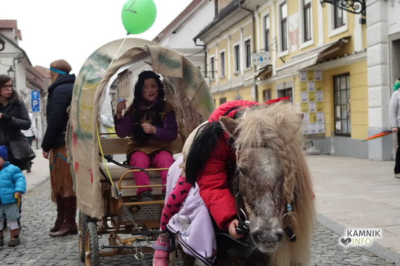 Maškarice in tudi nekoliko večje maškare so se začele okrog pol četrte popoldne zbirati na Šutni, od koder so uro kasneje, v spremstvu kamniških godbenikov in mažoretk, v živopisni povorki krenile proti Glavnemu trgu, kjer so jih pričakali krofi, zabavni program in izbiranje najlepših mask.