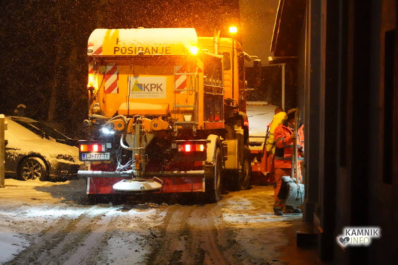Četudi snega zaenkrat še ni prav veliko, pravzaprav ga je na območju Kamnika trenutno več, kot pa v Tuhinjski dolini ali prelazu Kozjak, pa so ekipe zimske službe v polni pripravljenosti oz. že na delu.