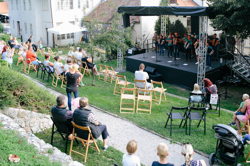 Danes smo dodatni jesenski KUL petek, za katerega je organizator pridobil pozitivno mnenje NIJZ, obarvali z utrinki kamniške dediščine – ljudskih plesov, petja in glasbe. Za nastope se zahvaljujem orkestru harmonikarjev Cirila Spruka, Mestni Godbi Kamnik, Društvu kamniških mažoretk Veronika, Folklorni skupini Kamnik in Ansamblu Viharnik.