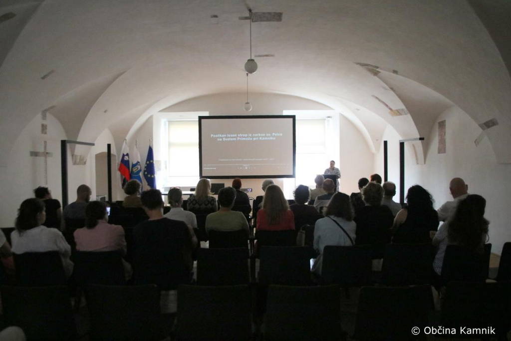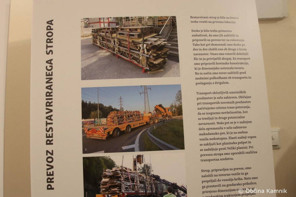 Podžupanja Romana Učakar je izrekla vsem dobrodošlico v prelepem srednjeveškem Kamniku in dejala: »V naši sredini lepo pozdravljam vodjo projekta razstave iz Zavoda za varstvo kulturne dediščine Slovenije, iz območne enote Kranj, magistro Majo Avguštin, in se ob tem zahvaljujem soorganizatorju razstave, Javnemu zavodu za kulturo Kamnik in direktorici gospe Ireni Gajšek za današnje gostoljubje, tu v čudovitem samostanu Mekinje, kamor je razstava pripotovala iz Ljubljane in bo na ogled do decembra. Se pa veselim, da bom poslikan strop videla tudi v živo na Svetem Primožu, ki je naš priljubljen romarski in pohodniški kraj.«