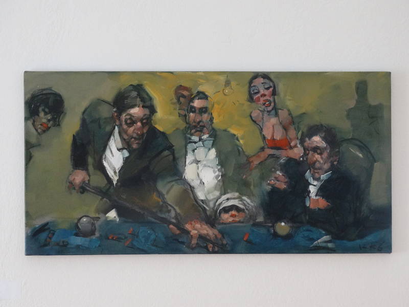 Slikar ustvarja risbe, naslikane z barvami, v ospredju pa je vedno človeška figura. Umetnik igra vlogo opazovalca, ki ga zanima predvsem človek oziroma njegova podoba. Prikaže ga v najrazličnejših situacijah iz vsakdanjega življenja. Pogosti motivi so portreti, posamezniki ob igri biljarda ali kart, v trenutku pred baletnim nastopom ipd. Vsebinsko zelo pomembna je tudi glasba, saj so na njegovih slikah mnogokrat upodobljeni različni glasbeni inštrumenti, večkrat upodobi dirigente ali člane orkestra. Tudi samega umetnika lahko primerjamo kot dirigenta, ki naslika svojo melodijo. Pogosto pa se pojavljajo tudi motivi Don Kihota ali generalov v podobi opice ali harlekina. Vsi liki se zdijo malo karikirani. Ob slikah začutimo dogajanje in okolje v katerega je postavljen motiv. Z osvetlitvijo in sencami pričara vzdušje, katerega je naslikal. Vsaka slika je kot ilustrirana zgodba.
