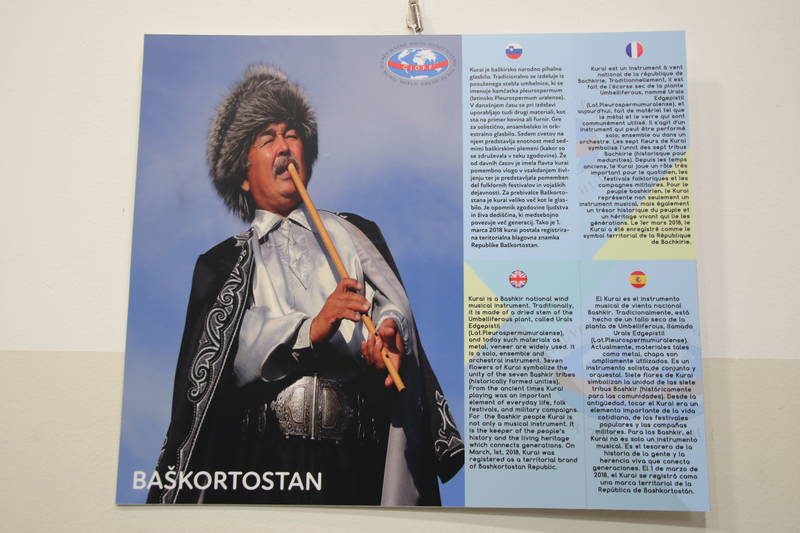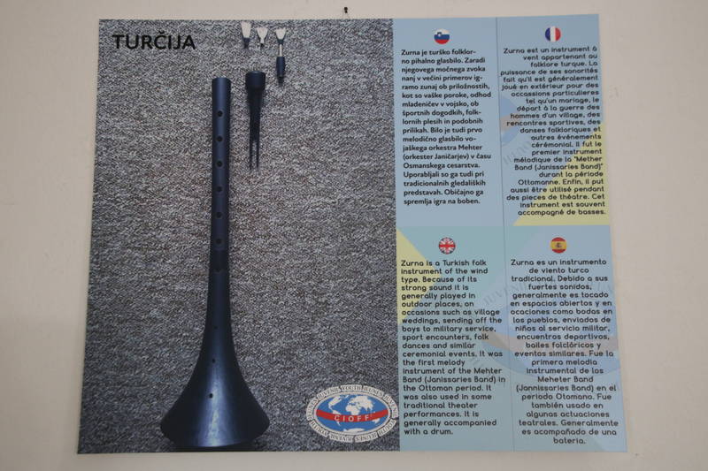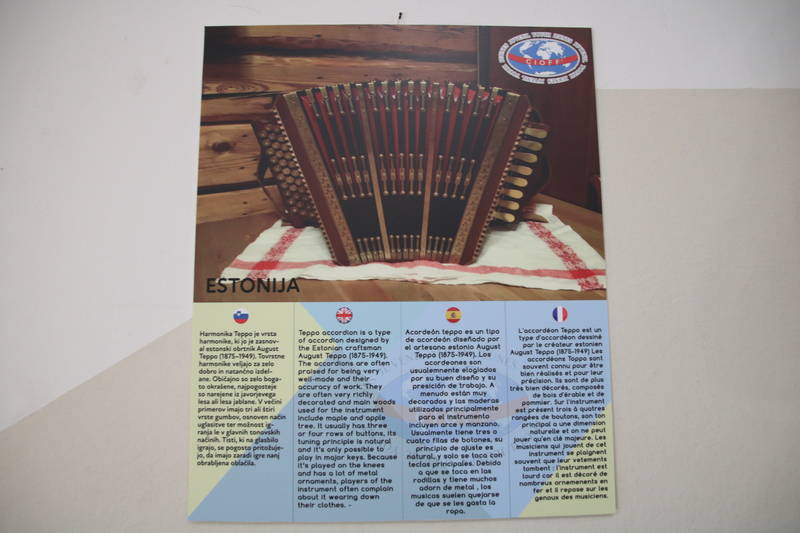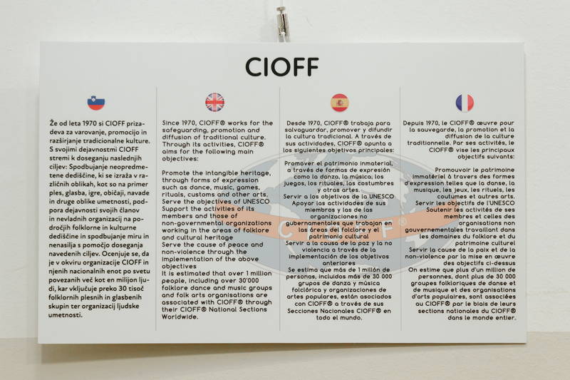 Razstava Ljudska glasbila sveta prikazuje različna ljudska glasbila iz 27 držav, pri čemer vsakemu pripada fotografija glasbila in opis glasbila v štirih jezikih, slovensko, angleško, špansko in francosko. Razstavo je pripravil CIOFF Youth s pomočjo nacionalnih sekcij CIOFF, tudi slovenske ZLTSS.