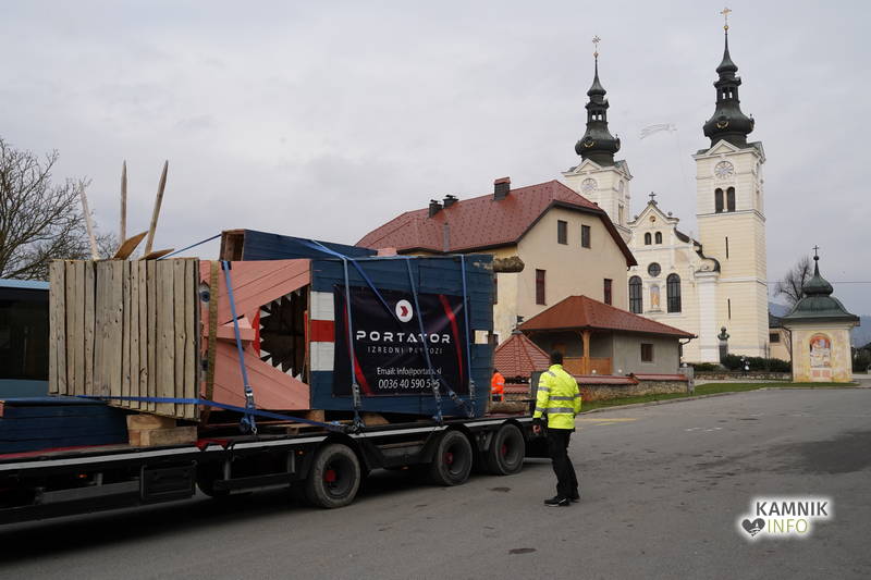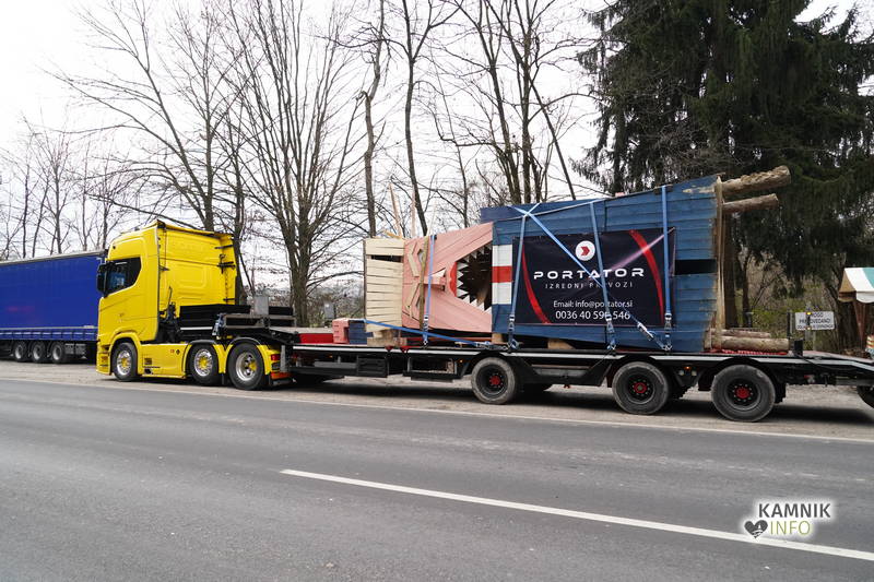 Kip svobode oz. Trumpov spomenik je danes opoldne, po zahtevnem nalaganju, v spremstvu lučk na velikem rumenem tovornjaku iz Sel odpotoval v Moravče, ki so še za spoznanje bližje Sevnici, kjer stoji leseni kip njegove izvoljenke.