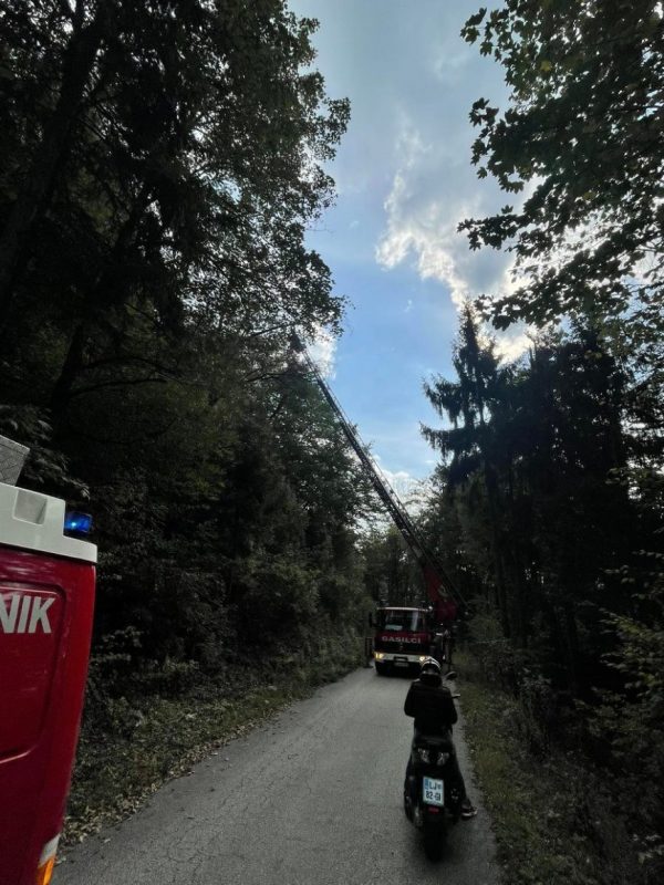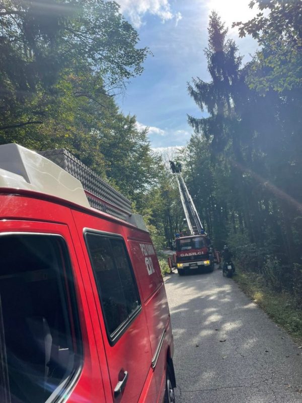 Kamniški gorski reševalci in gasilci so pod Špico v Kamniku z drevesa (p)obrali strmoglavljenega jadralnega padalca.